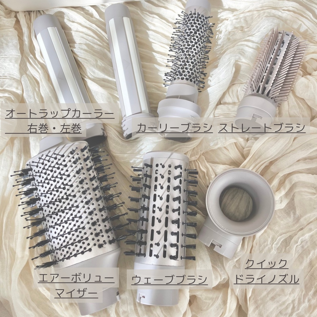 1台でドライも理想のスタイリングも💓 なんと7種類のアタッチメントが付属しているので、いろんなヘアアレンジが楽しめます☺️ 圧倒的な風量で大満足🧡 あっという間に髪が乾きます。 それにすごく軽いので使っていて疲れなくて、子どもたちもラクに使えて良かったです☺️