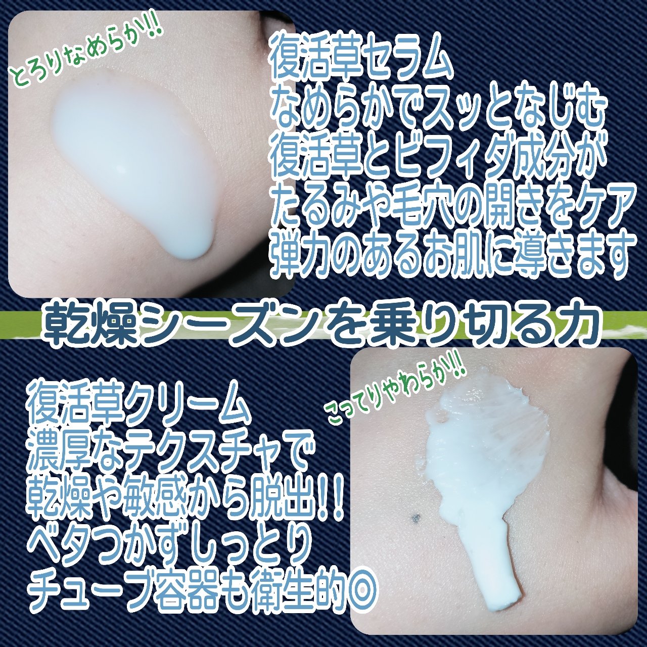 | クリームは軽いテクスチャーで、肌にのせるとスッと馴染み、べたつかないので朝晩どちらも使いやすいです。 | 詳細を見る | ||