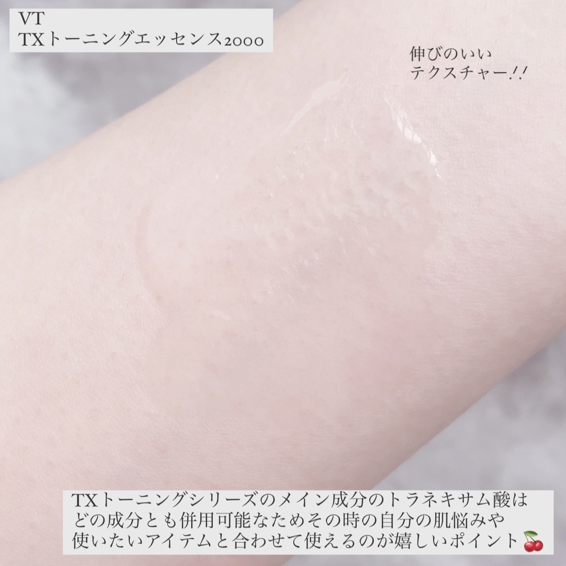 自宅で美白ケアできるのが嬉しい♡ ニキビ跡だけでなく炎症ニキビにも効果があるので、肌荒れ中の使用も特に刺激なく使えるのはかなり高ポイント☝️ TXトーニングトナーはしゃばしゃば水系なトナーでさらっとしていてべたつかない。 トラネキサム酸高配合のこちらがおすすめ。 この組み合わせで肌トラブルも美白ケアもしていきたいです!