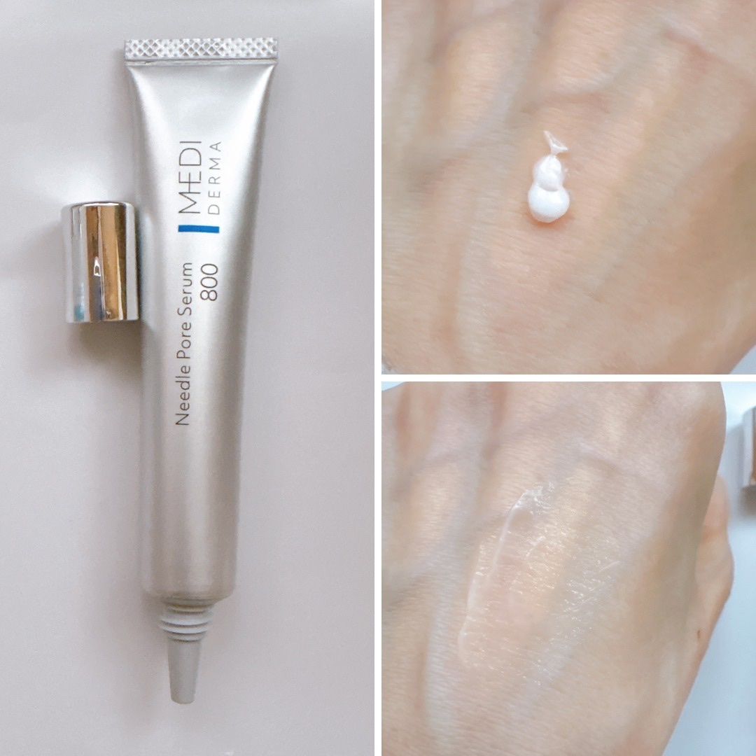 シルバーのチューブに入ってます。キャップを開けて出すタイプでピンポイントでの使用に良いですね。 中身を出してみると見た目は白いクリーム。塗り広げると結構ピリピリ?(なにかが刺さっているような感じ)がします。 マイクロニードルが美容成分を肌の奥(角層)まで届けて浸透して、毛穴の目立ちにくい肌へ導いてくれるそう✨