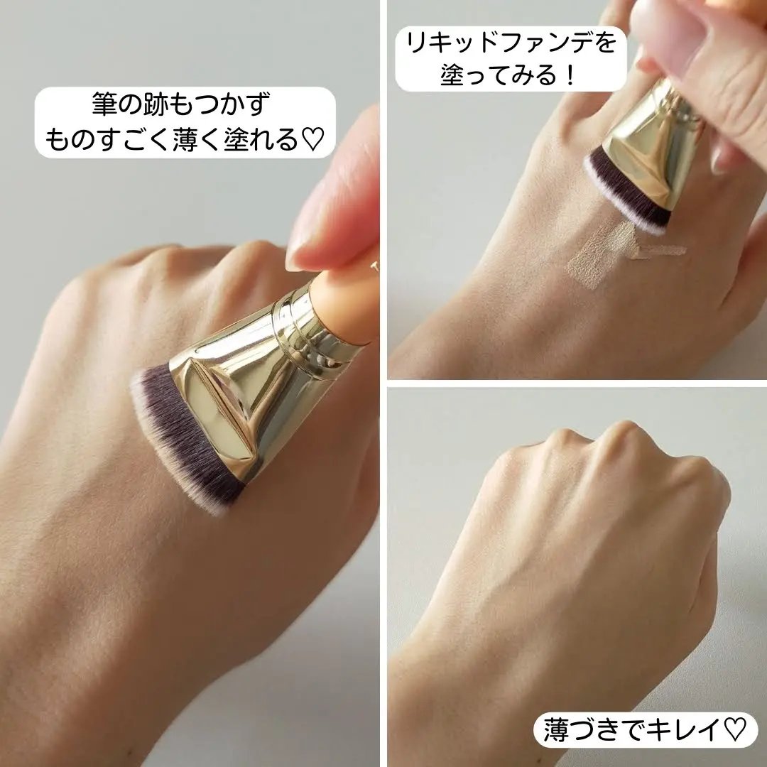 ブラシ+メモリーフォームパフで薄く均一な仕上がりにっ⟡.* ケースがついてて持ち運びにも便利🥰 このブラシとパフを使うことによってより密着して毛穴や凸凹をカバーしてくれるの🤍 全国のロフト、Qoo10で購入できるよ✨️ 是非チェックしてみてね.ᐟ.ᐟ