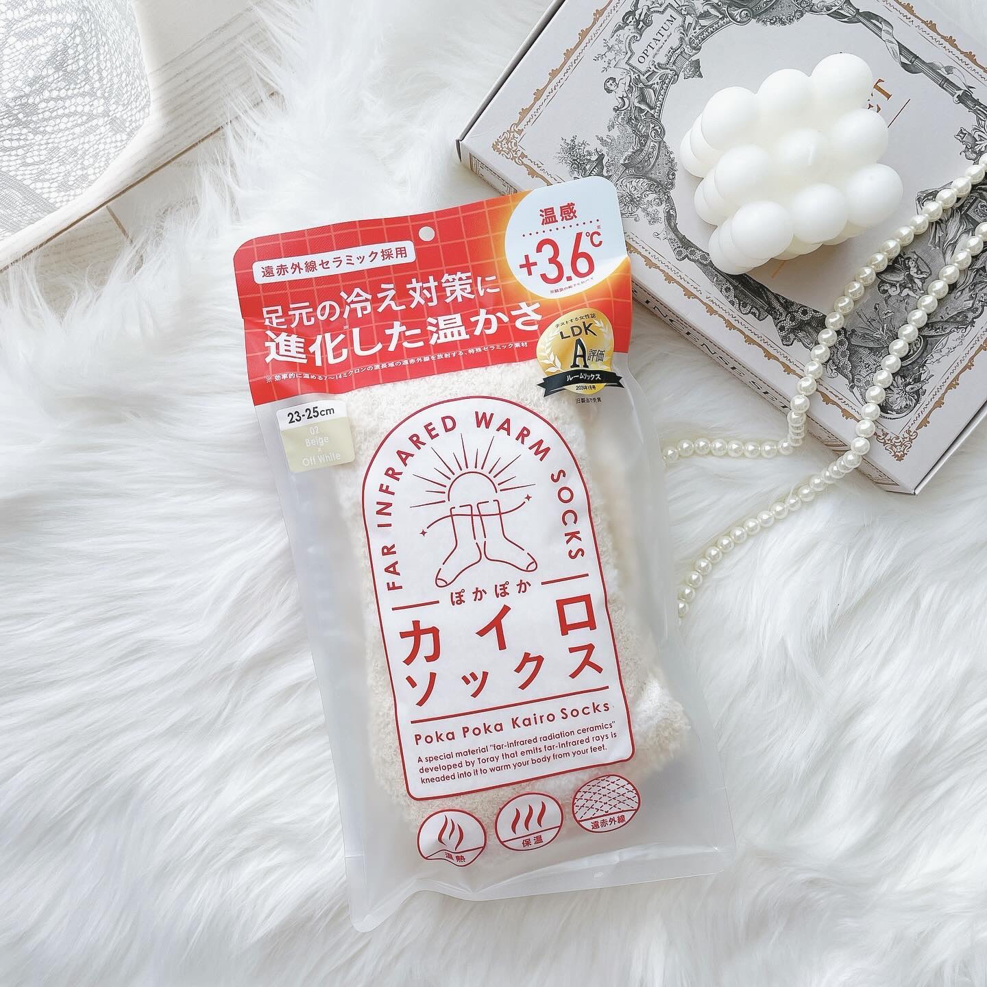 冷え性さん必見! 雑誌やSNSで話題のぽかぽかカイロソックス 足先が冷えてしょうがない冬の強い味方🧦✨ 遠赤外線放射セラミックを練り込んだ繊維を使用した機能性ソックス。 履いた瞬間、生地の厚みに感動🥹 二重構造になっていて足指の冷えにもしっかり対応してくれる感じがしました…!