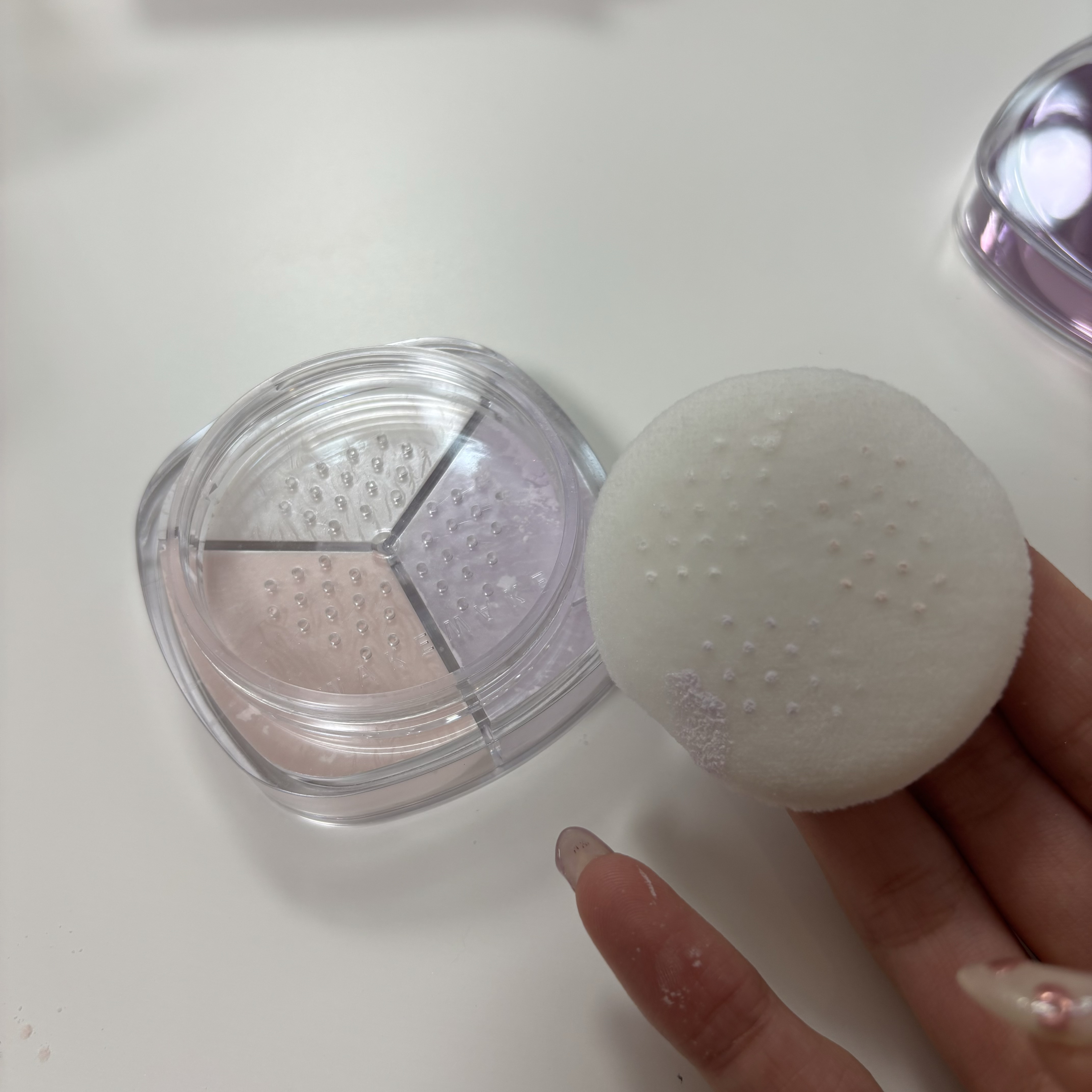 触るとさらさらなのに乾燥しなくて、長時間メイクキープしてくれるし、ラベンダーが入っているからトーンアップして綺麗なシルキー肌になれます🫶🏻💕 細かいラメが入ってて、ツヤ感も綺麗すぎる✨ これからの時期のデートに使いたいパウダーです👼🏻