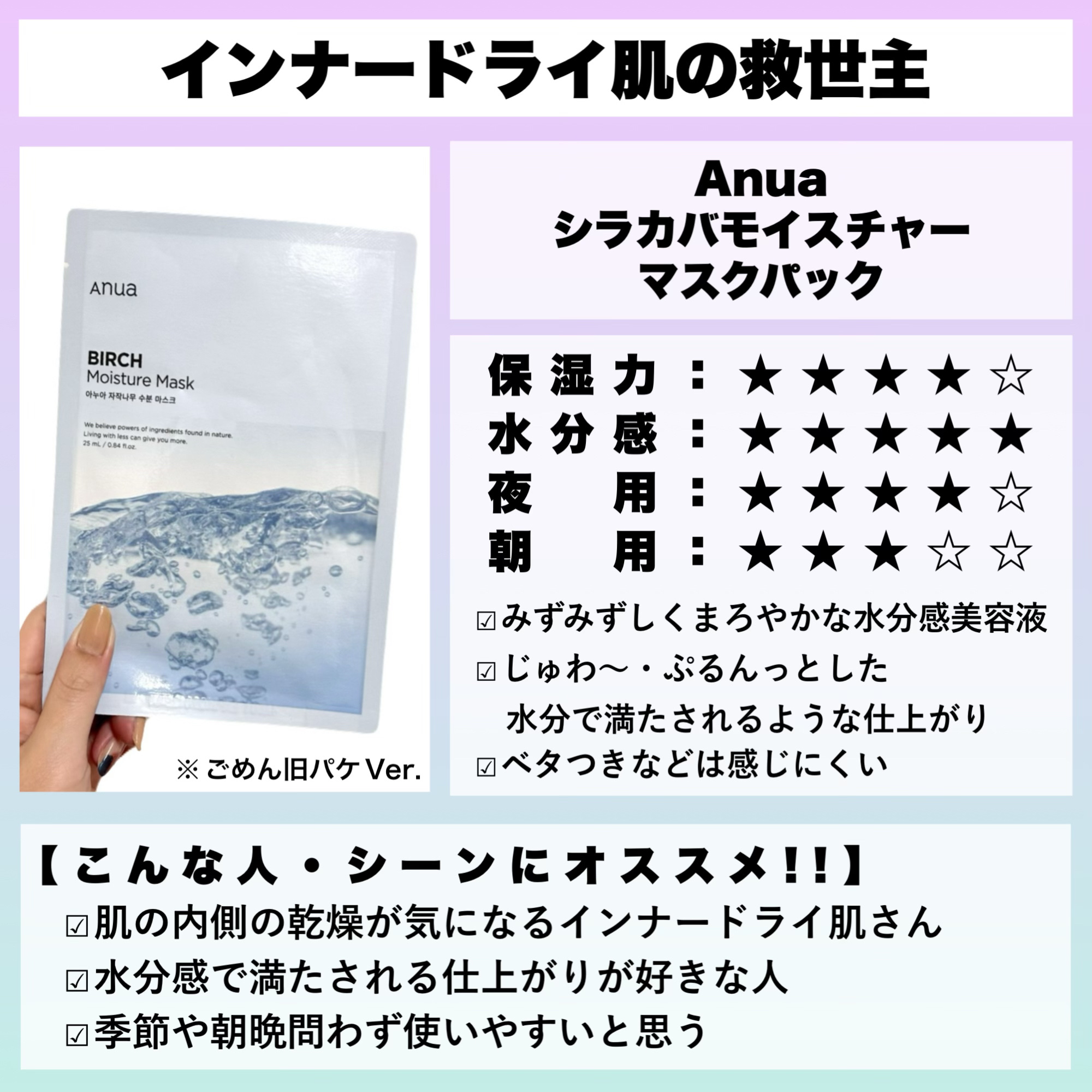 | スキンケアランキング第33位 | 水分をたっぷり含んだ透明なウォーターゲルシートがぷるぷる、美容液ひたひたですごい👀 ˎˊ˗ | 詳細を見る | ||