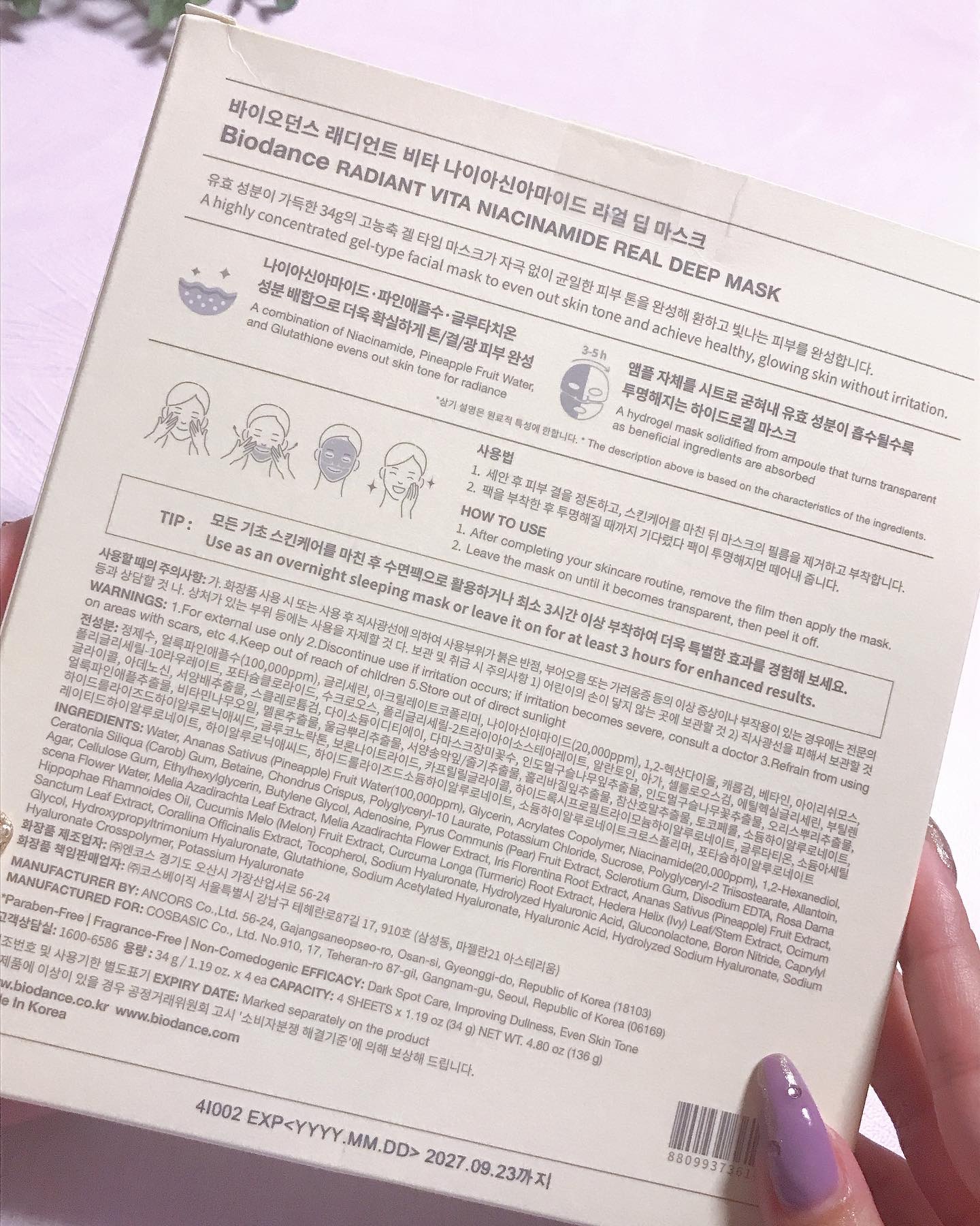 商品詳細情報Biodance ビタナイアシンアミド リアルディープマスク