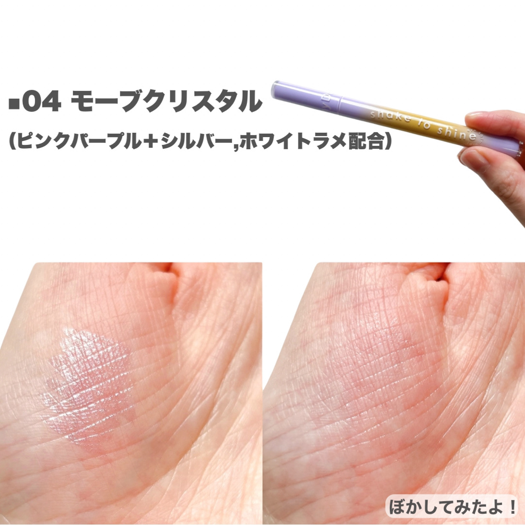 簡単に落ちない*滲まない、そして速乾タイプなのも嬉しい。 アイライナー以外にも、1本5役🙌 ハイライトの場合は、乾く前にすぐぼかしてね! この部分に、ちょっとした細かいラメつけたいのにな... そんな時にめちゃくちゃ使えますよ👏