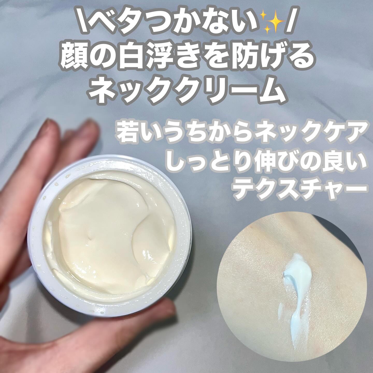 首のシワケアにおすすめクリーム✨ ナイアシンアミド配合白いこっくりめなクリームで自然なトーンアップ ベタつかないので服着るのも気にならない🥰 スーッと爽やかな香りがするよ🫶 首って年齢出るから毎日首までコツコツケア⚠️