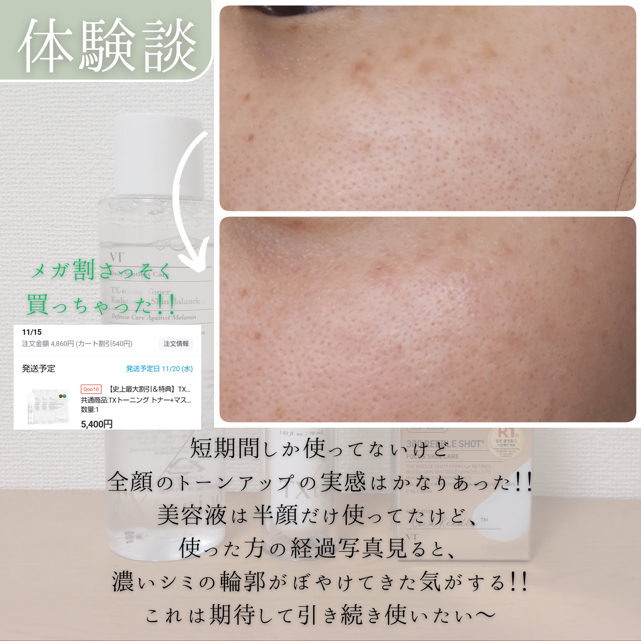 発売4カ月で40万個も売れた話題の商品 Qoo10にて人気沸騰中のTXトーニングシリーズ! くすみ・シミ・ニキビ跡へ集中的にアプローチ✨ トラネキサム酸はどんな成分とも併用が可能なため、肌悩みやお好みの成分のエッセンスと合わせて使えます! 高濃度&高配合のトラネキサム酸で肌トラブルZEROの素肌へ リードルショットと一緒に使用するのがおすすめです♪