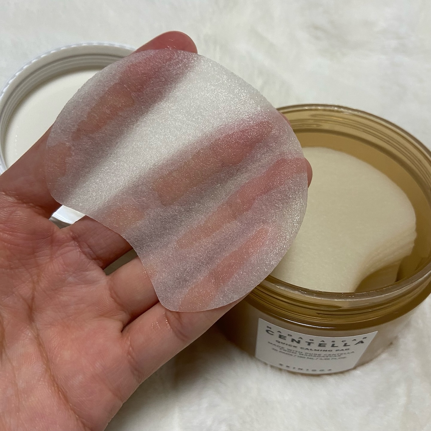小さめのパッド系パックってやっぱり韓国コスメの得意分野。 全成分EWGグリーン等級の鎮静パッド 時間がない朝でもたった1分で叶える水分チャージ パッドの形が程よくくぼんでいて、目や鼻の周りに隙間なくぴったり密着するのと、ガサガサしなくて優しい肌触りのシート