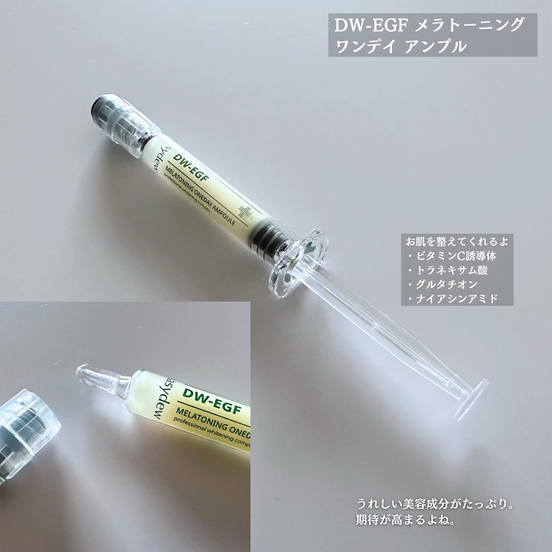 韓国トップクラスの大熊製薬会社発 ドクターズコスメ💚 特許を取得している人の細胞と99.9%同一の高純度のDW-EGFのみ使用😍‼︎ まるで白玉注射⁉︎のような注射器型美容液💉 シミ集中ケア♡ 1回の使い切りじゃなくてもOK🙆♀️ 新作のビタCトナー💛 メラニンの予防や肌キメを整え水分力UP✨