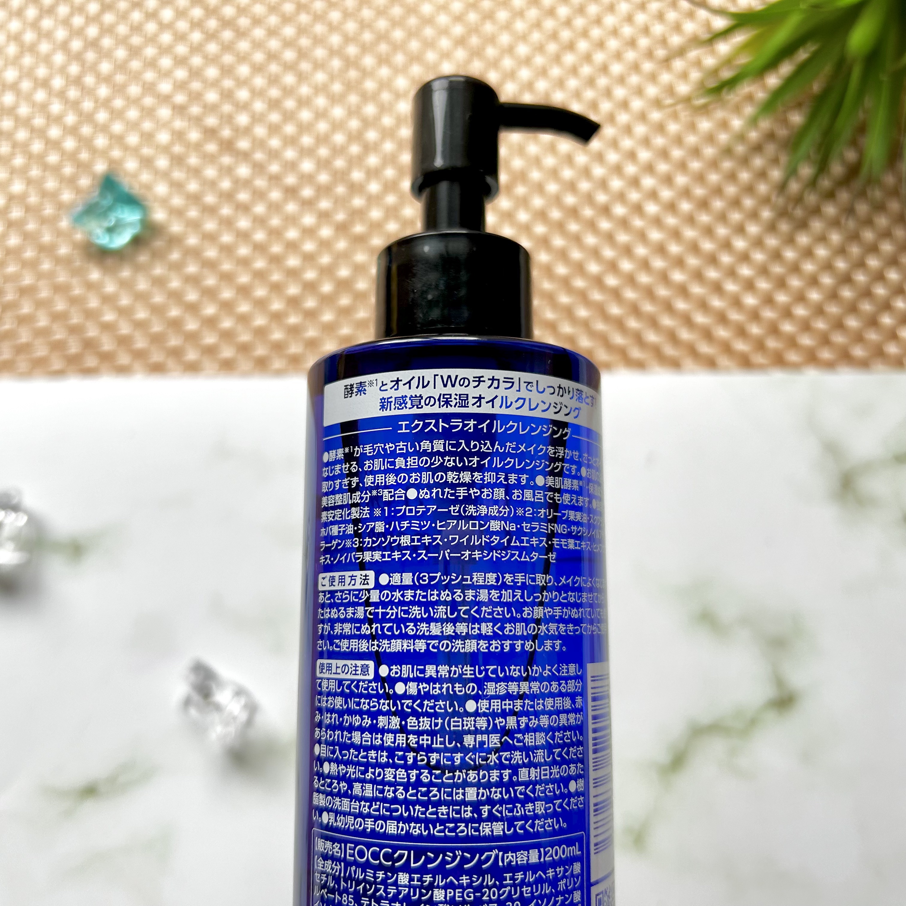 - 新感覚!保湿オイルクレンジング。 メイクはしっかり落したい、でもオイルクレンジングは肌の乾燥が気になるという方に、「Extra Oil Cleansing(エクストラオイルクレンジング)」は酵素が毛穴や角質のすき間に入り込んだメイクを角栓や古い角質とともに細かく分解し、オイルにさらっとなじませ落としやすくしてくれます。 また、肌の油分を取りすぎず、使用後の肌の乾燥を抑えてくれます。 美肌酵素・保湿成分・美容成分配合で使用後のお肌の乾燥を防ぎます。 <<ぬれた手や顔、お風呂でも使えます>> ●酵素※1が毛穴や古い角質に入り込んだメイクを浮かせ、さっとオイルとなじませる、肌に負担の少ないオイルクレンジングです。 ●肌の油分を取りすぎず、使用後のお肌の乾燥を抑えます。 ●美肌酵素※1・保湿成分※2・美容成分※3配合 ●ぬれた手や顔、お風呂でも使えます。 ●6つのフリー 香料・着色料・鉱物油・アルコール・パラベン・石油系界面活性剤不使用 ●独自の酵素安定化製法 ※1 プロテアーゼ(洗浄成分) ※2 オリーブ果実油・スクワラン・ホホバ種子油・シア脂・ハチミツ・ヒアルロン酸Na・セラミドNG・サクシノイルアテロコラーゲン ※3 カンゾウ根エキス・ワイルドタイムエキス・モモ葉エキス・ヒメ フウロエキス・ノイバラ果実エキス・スーパーオキシドジスムターゼ