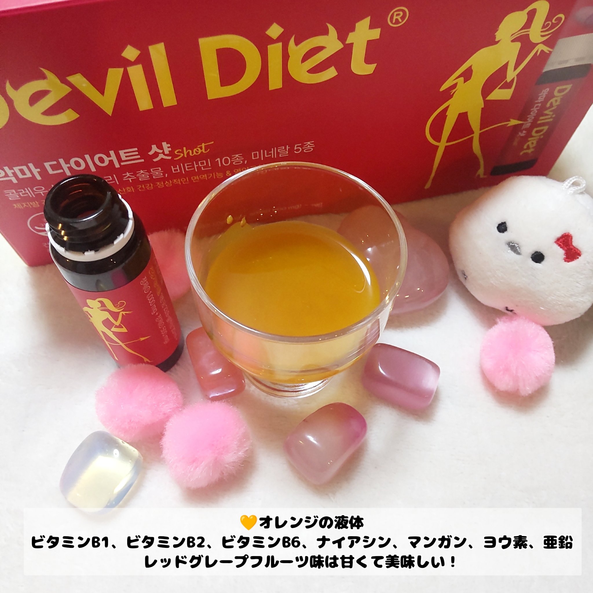・悪魔ダイエットショット錠剤2粒と液体を一緒に飲むだけ!セットになってるので忘れにくい♪コンパクトで持ち運びも便利♡ボトル入りの液状はレッドグレープフルーツ味で美味しくインナーケア!!ミネラル5種+ビタミン10種が配合でダイエットだけでなく活...