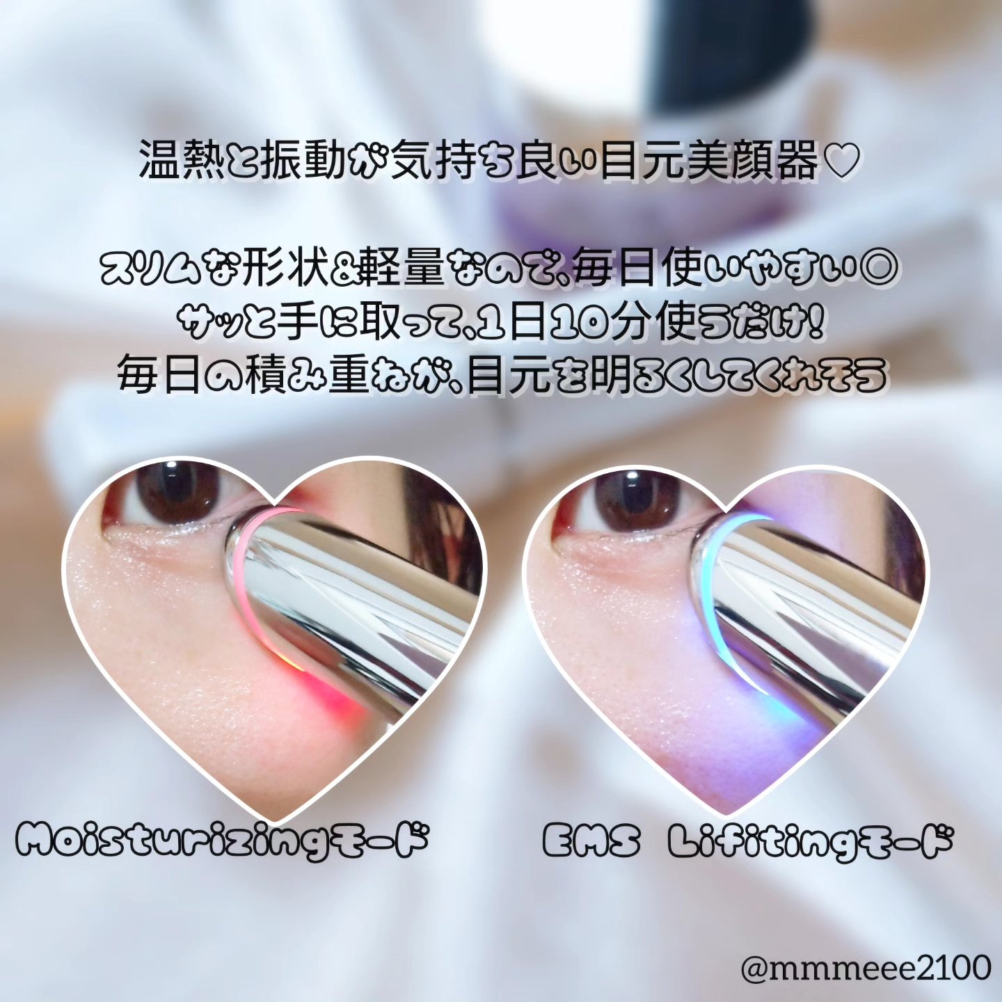 オススメの目元ケア✨ (1)Moisturizingモード 美容液を浸透 エンリッチドアイクリームを組み合わせて、ANLAN EMS目元美顔器を使用して、モード1「赤色LED光エステ+温熱+振動+イオン導入」を選択して、目元ケア これ凄い使いやすい🎶 温熱が とても気持ちいい❤︎ EMS Lifitingモード EMSリフト ジェルを組み合わせて、ANLAN EMS目元美顔器を使用して、モード2 「青色LED光エステ+温熱 +EMS」を選択して、目元のリフ トアップをケア