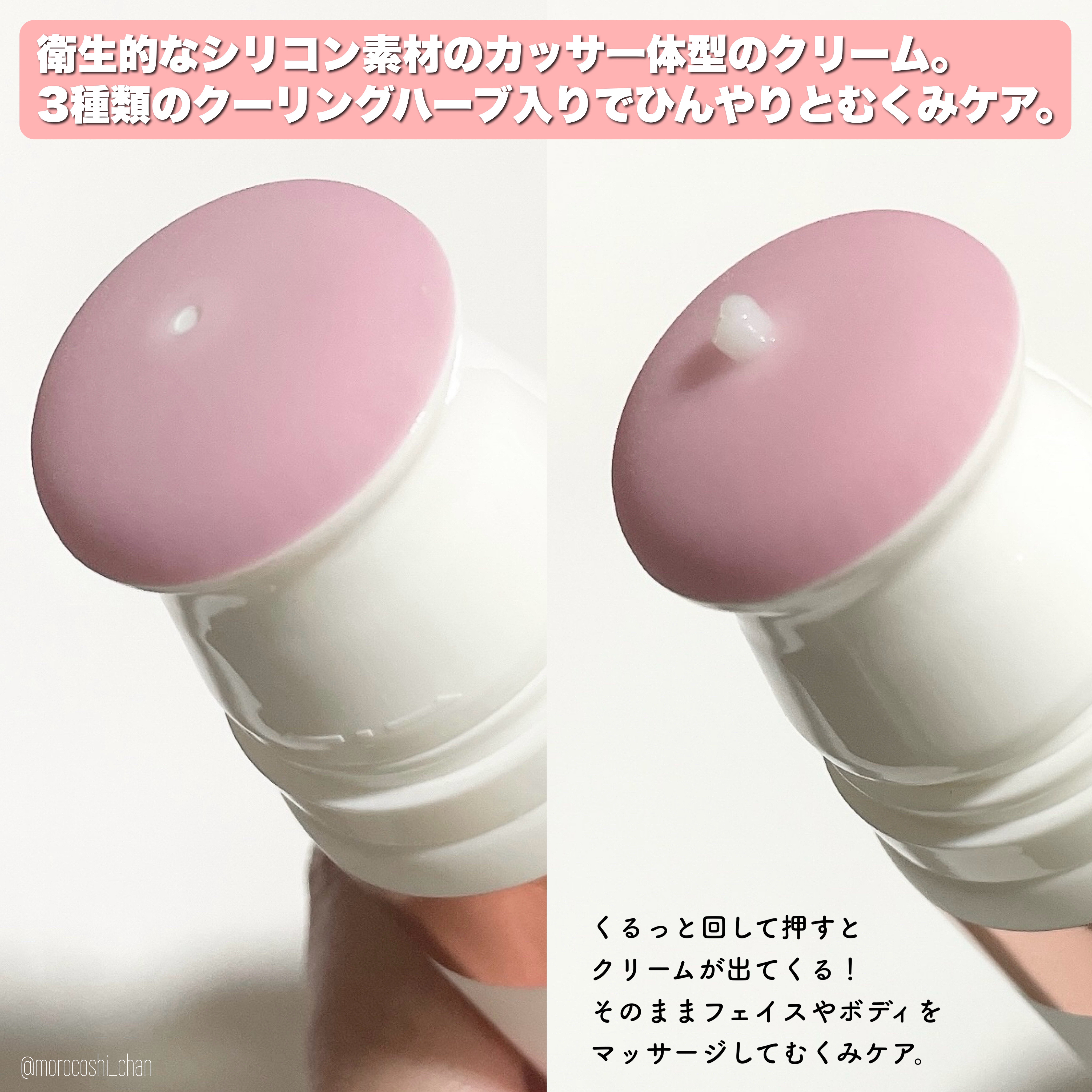 ドランクエレファントはヘルシーな肌のためになると信じている原料、もしくは処方の安定性に貢献する原料のみを選んで配合しているそう。 こちらはフェイスクリーム。フタを開けて緑色の部分を押すと1回分がニュッと出てくる!画期的だし衛生的✨ なめらかなテクスチャーでベタベタしないから夏場にピッタリ🙌💚 塗ってすぐベースメイクができちゃうくらいの軽いつけ心地🤤 公式サイトを見てみると1回分をニュッと出したあとは緑色の部分に美容液などを乗せて混ぜて使う…なんて使い方がオススメだそうです😳! 夏場はベタベタするのが嫌でついスキンケアをサボったり、サッパリ系のものを選んでしまいがちだけどこれなら保湿しっかりできそう〜🥳💮