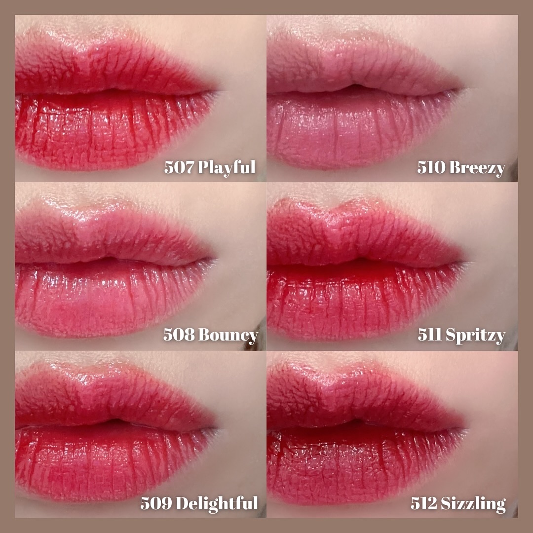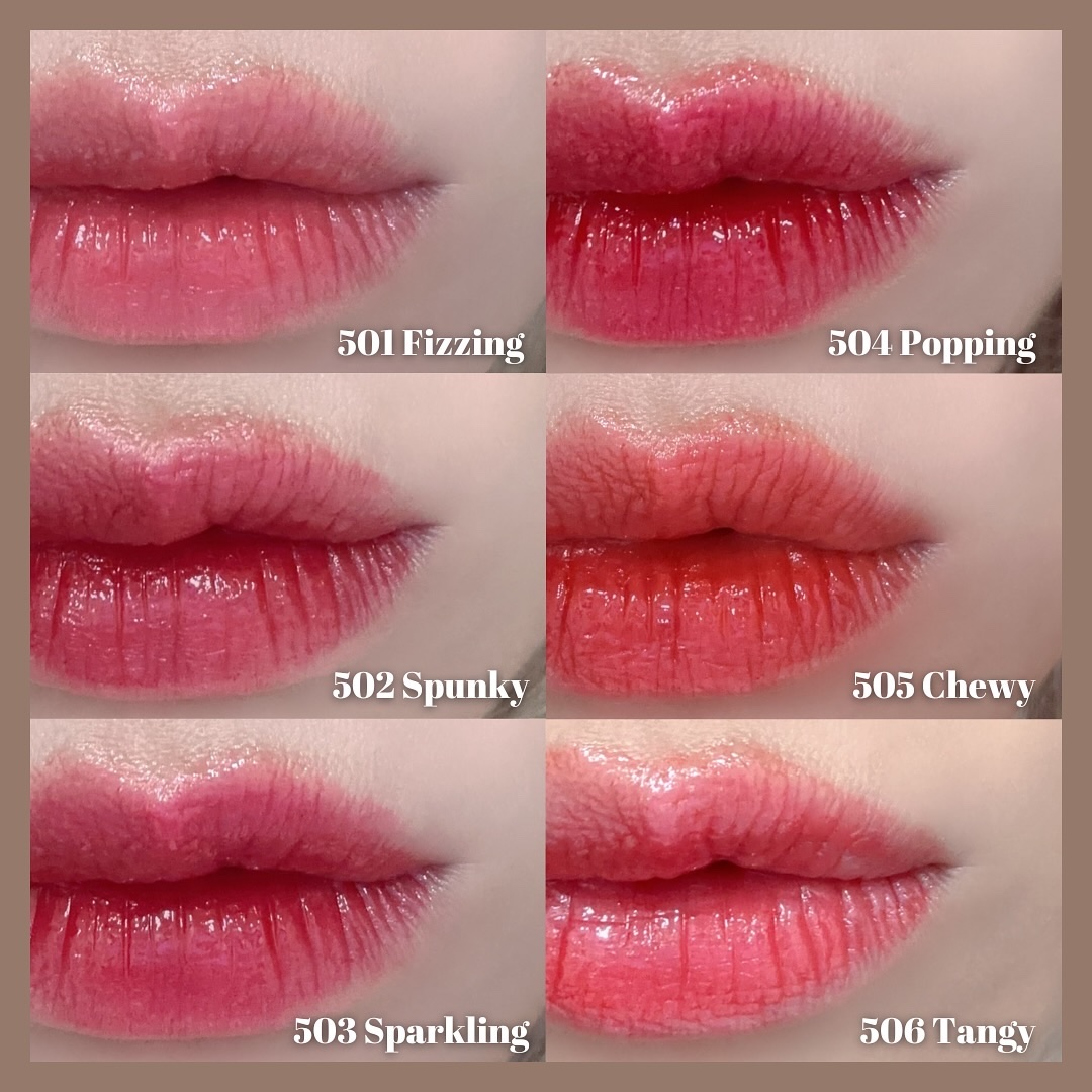 カラバリ豊富 501 フィジング 502 スパンキー 503 スパークリング 504 ポッピング 505 チューイー 506 タンギー 507 プレイフル 508 バウンシー 509 ディライトフル 510 ブリージー 511 スプリッツィー 512 シズリング 暗くなりがちな秋冬のメイクを華やかにする イルミネーションリップだね!! 色鮮やかで透明感のあるカラーは、塗り重ねるたびに発色がさらに際立ち、唇にふっくらとしたボリューム感を演出💋💋
