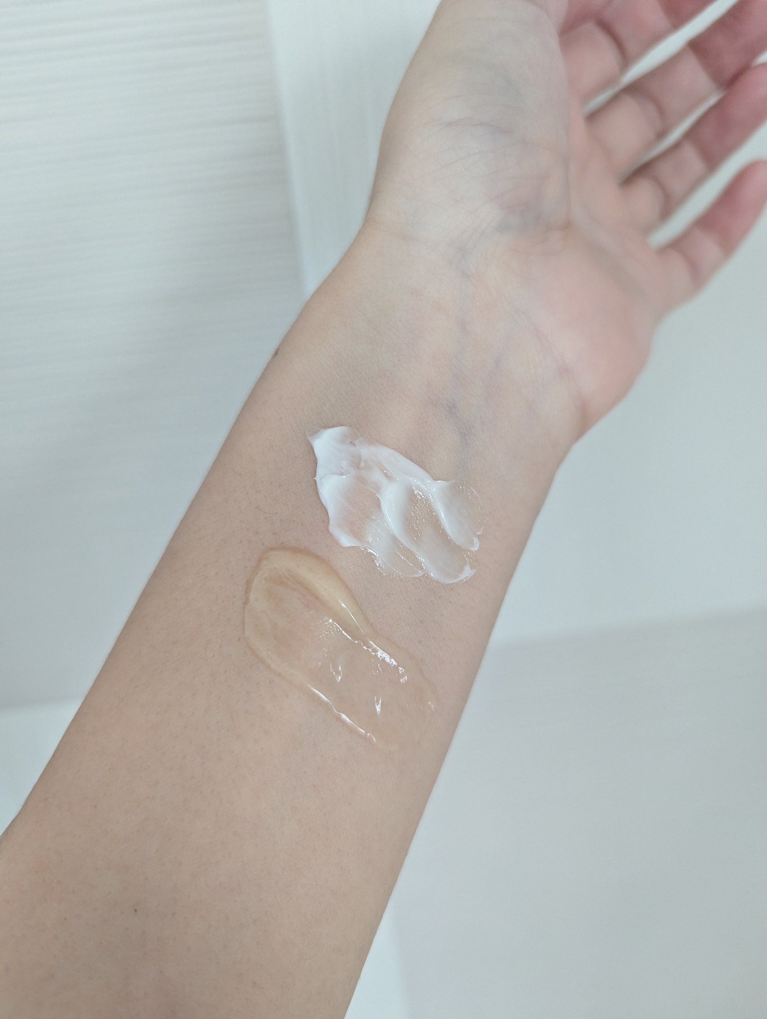乳液のような濃さを感じられるようなエッセンスが入っています✨贅沢な厚みのあるシートで肌触りが柔らかくて気持ち良い🌱 頬のところに深めの切り込みが入っています!!切り込みの下の部分をググっと引き上げて⤴️フェイスラインを持ち上げるようにして貼り付けると引き締め感を感じることができて気持ち良い☺️ アクアセラム→黄色のジェル状テクスチャーで水分&鎮静ケアインテンスクリーム→白いコクのあるクリームで栄養&弾力ケア