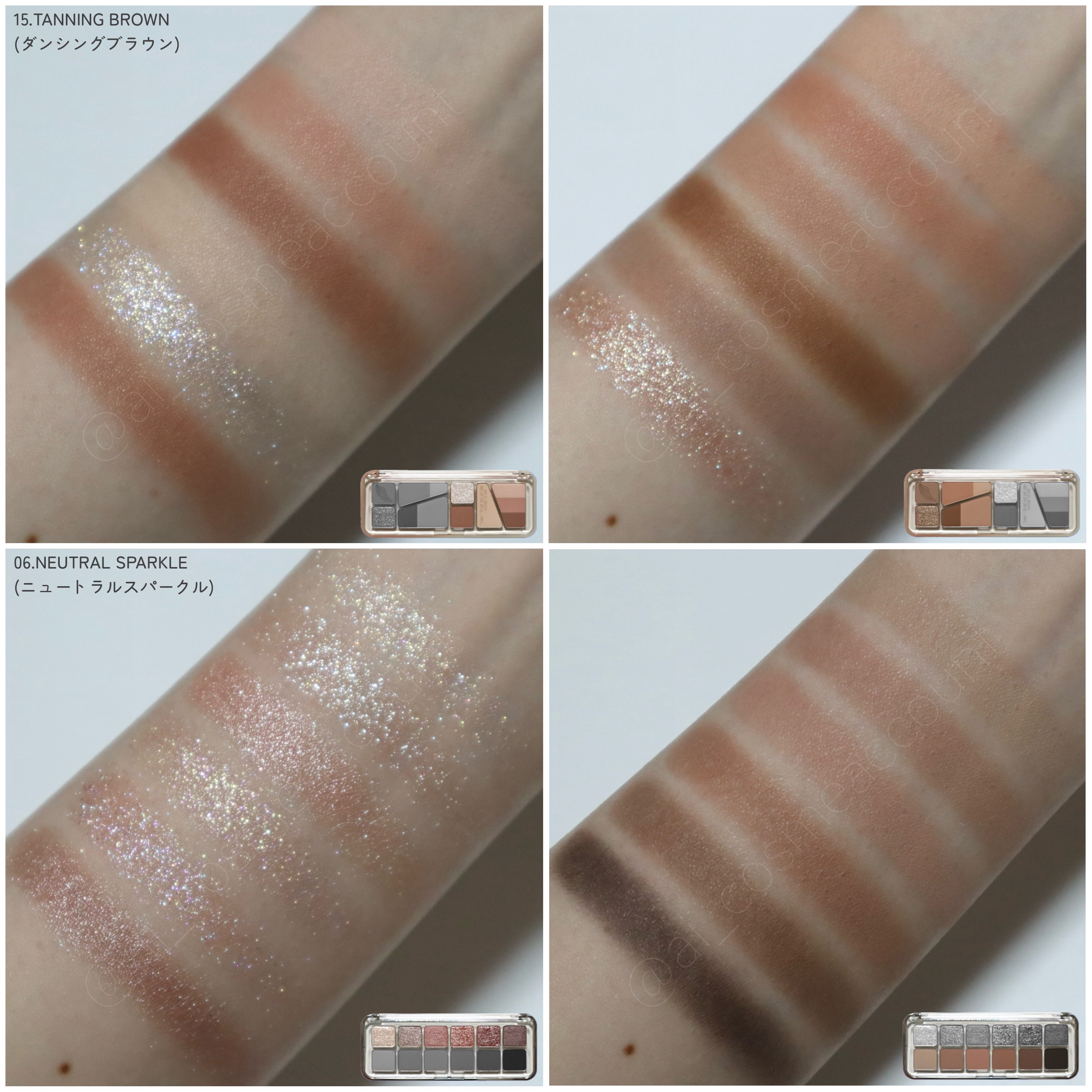 [CLIOPROEYEPALETTE全色スウォッチ]CLIOプロアイパレットの1号〜10号と、StreyKidsコラボ限定色の100号・101号の全色スウォッチです。フラッシュ撮影の全色スウォッチはコチラ↓https://lipscosme....