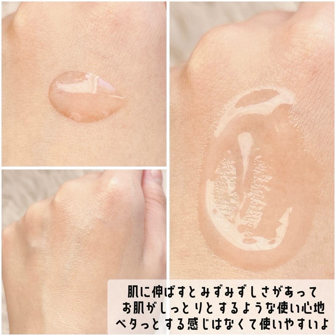 | とろみはあるけどベタつかず、伸ばしていくと肌がツヤっぽくなっていく◎ | 詳細を見る | ||