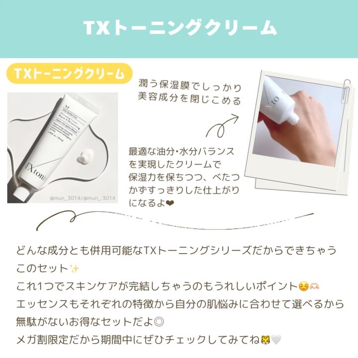 𝘝𝘛 が今年最後のメガ割でこれまでにないお得なセットを販売します! 話題の𝘛𝘟 トーニングラインをメインにリードルショットの有無、エッセンスを悩み別に選べるお得なセット🎁 大人気のTXトーニングシリーズ! 発売4カ月で40万個も売れた話題の商品👏🏻 シミやそばかす、ニキビ跡を薄くすることから塗るレーザートーニングとも呼ばれるほど🫢