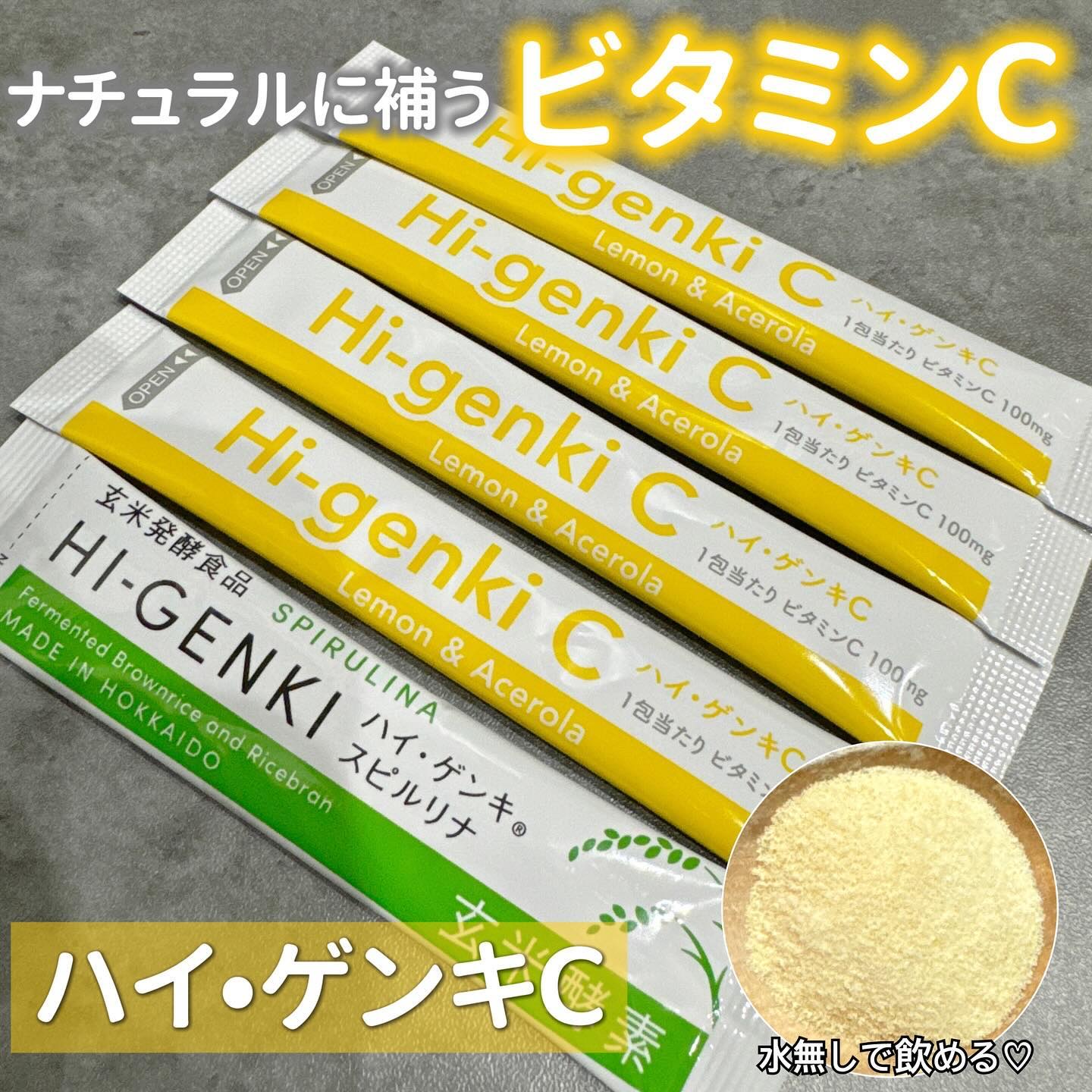 「ハイ・ゲンキ」の玄米酵素で有名な株式会社玄米酵素様の「ハイ・ゲンキC」 - ̗̀🍋 ̖́- ゆらぎやストレス、バリア機能をアップさせたい方におすすめのアイテムです🧃🌟 ハイ・ゲンキCに含まれるビタミンCはアセロラとレモンから作られた植物素材由来のものを使用しており、なんと化学合成されたビタミンCは不使用😳😳 サラサラした顆粒タイプで、口の中でサッと溶けるから凄く飲みやすい‼️ お味は穀物(玄米)のまろやかな風味とレモンの様な柑橘系の爽やかな風味が一緒になった感じ。
