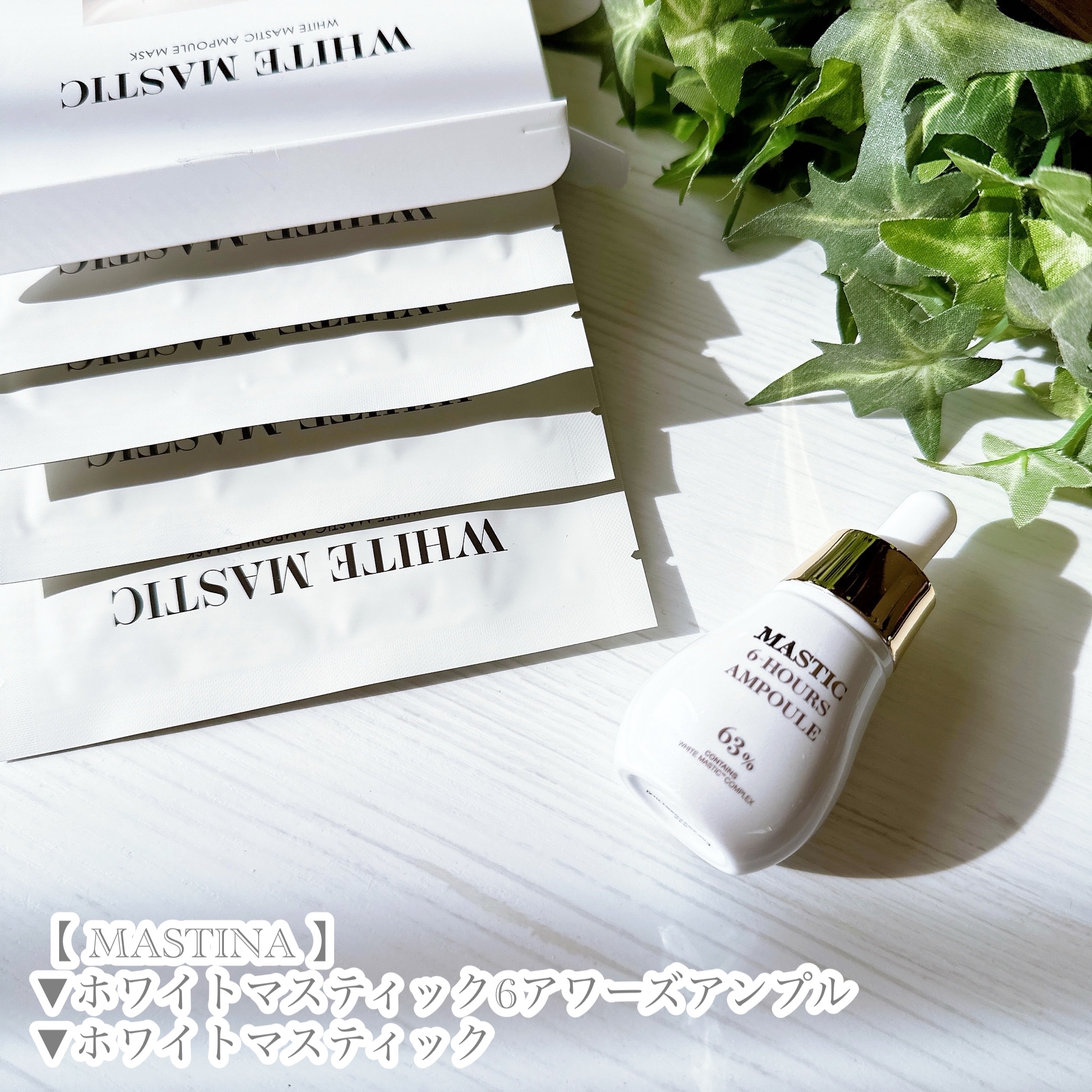 独自成分「ホワイトマスティック™」のブライトニング成分630,000ppmが配合されたアンプル🌿 トラネキサム酸 2%、ナイアシンアミド5%配合で抗酸化・ブライトニングケアが同時にできます🙌 肌の刺激テスト済みで肌に優しいフォーミュラシートがひたひたで肌にぴたっと密着🙌!
