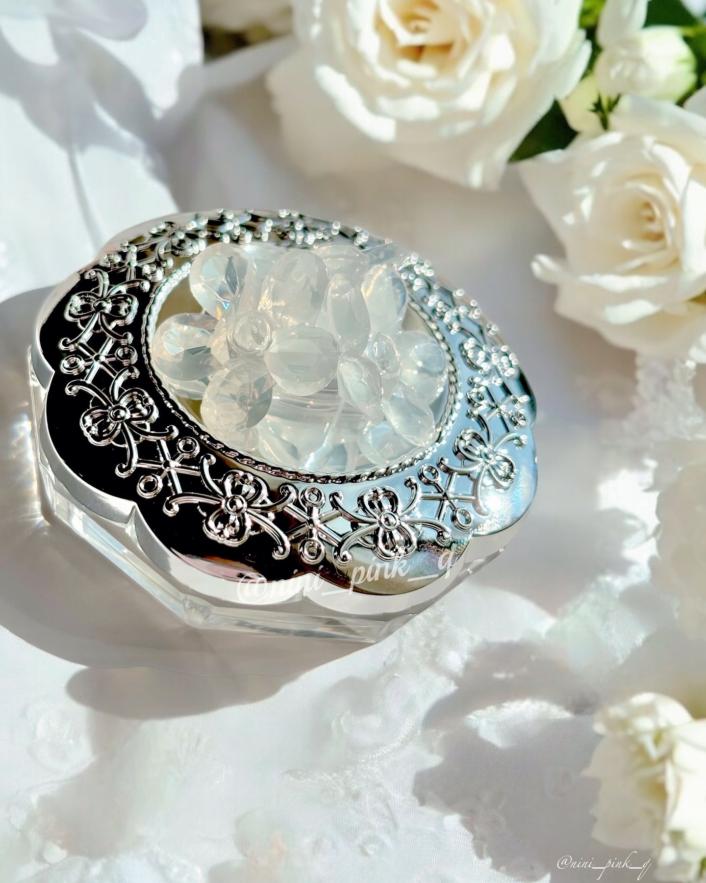 - ●歴代のクリスタルブルームシリーズから着想したカラーと香りが、サプライズ感を演出する2色セットのアイカラー。パールの繊細なきらめきとやわらかな彩りで、透明感溢れる目もとに仕上げます。 ●毎月、花言葉を添えて、全12種を展開します。 ●パールを楽しむペタルクリスタルカラーと、ソフトな色を楽しむペタルブルームカラーの2色セット。 ●ペタルクリスタルカラーは透明感の高いパウダーや、くすみの少ないパウダーを配合。白膜感が少なく、高密着パールのきらめきが長続きします。また、重ねてのせればお好みのきらめき感を楽しめます。 ●ペタルブルームカラーの質感はマット、サテン、パールタイプと様々。どのタイプも軽いタッチのオイル成分が汗や皮脂をブロックするため、つけたてのように透明感のある美しい発色が、質感とともに持続します。 ●2色(A/B)の間は仕切りがないため、単色でも、お好みで色を混ぜても使用できます。 ●09はBeloved CharmをイメージしたピンクXブラウンです。クリスタルブルーム ビーラブドチャームの香り。 ●10はMoonlight MagicをイメージしたアイスプルーXブラウンです。クリスタルプルーム ムーンライトマジックの香り。 ●アルコール(エチルアルコール)フリー、パラベンフリー。