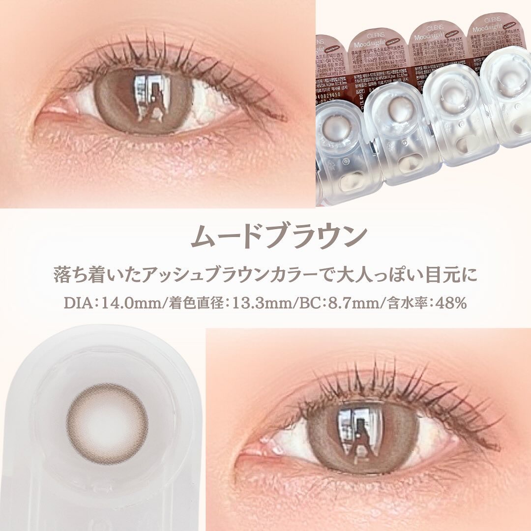 - 韓国カラコン業界の話題のブランド『OLENS(オーレンズ)』の日本正式承認商品シリーズ。 世界中から注目を浴びるグループ「NewJeans (ニュージーンズ)」がイメージモデル。 OLENSから待望の新シリーズ「Moodnight(ムードナイト)」が新発売しました! 透明感と儚げな印象を与えるアッシュカラーで、グラデーションフチなので瞳に奥行きを与え大人っぽい目元を演出。 自然に馴染む13.3mmの着色直径でほのかに瞳の印象を変える裸眼風なナチュラルカラコンです。 シーンを選ばず誰でも使いやすいのでナチュラルカラコン好きにお勧めのシリーズです! ■OLENS Moodnight(オーレンズムードナイト) ・枚数:1箱10枚入り ・カラー :全2色 ■使い方 コンタクトレンズは高度管理医療機器です。必ず眼科医の処方に従って購入してください。 ■使用上の留意事項 コンタクトレンズは高度管理医療機器です。眼科医の指導に従い装用期間を厳守し、正しくお使いください。眼の定期検査を必ず受けてください。添付文書を必ず読み、取扱方法、装用時間を守って正しくお使いください。少しでも異常を感じたら、直ちに眼科医の検査を受けてください。