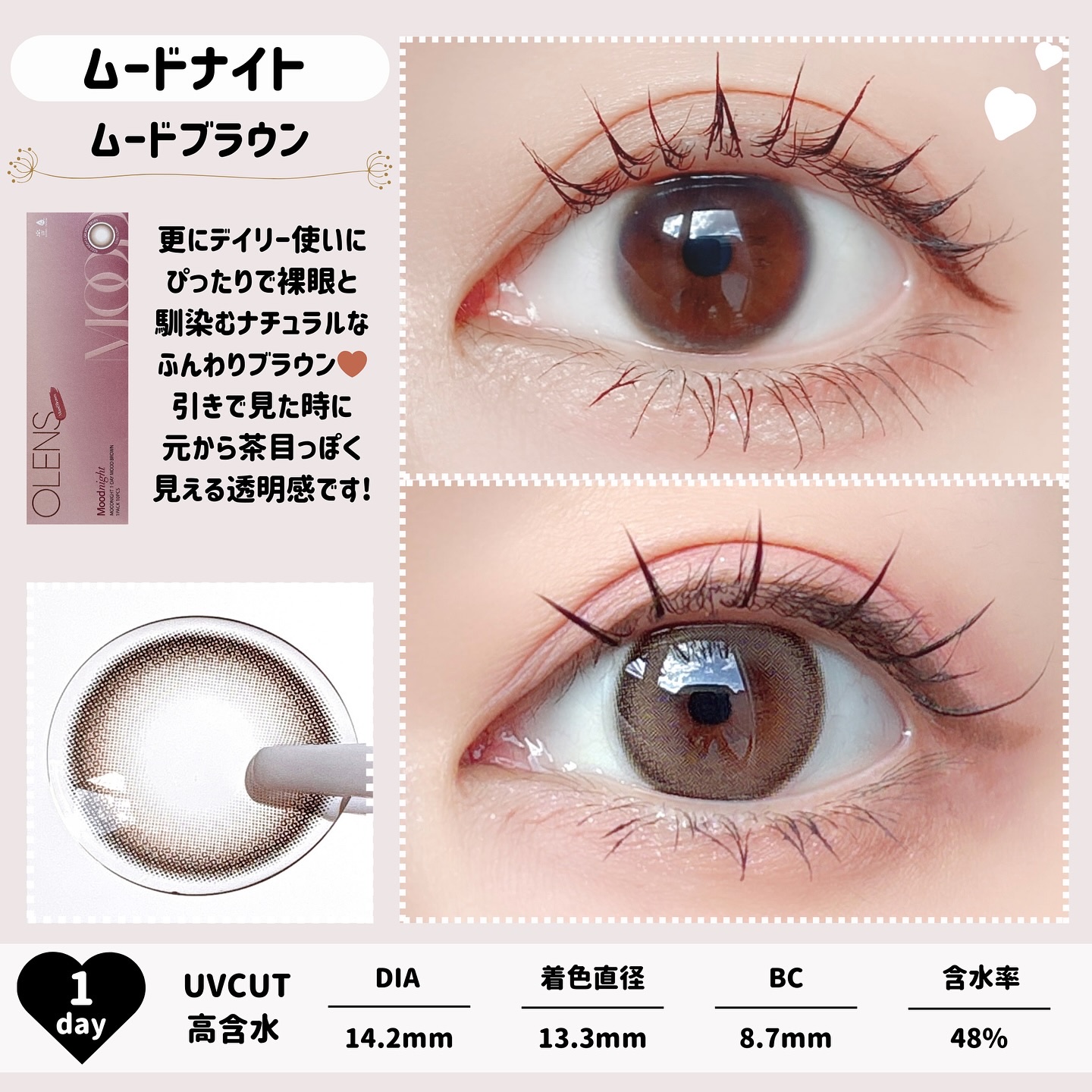 PR🫧「OLENS」さまより商品提供いただきました!ありがとうございます♡@olens_jp今回は『大人可愛い』印象になれるカラコンをご紹介♪🤎Moodnightシリーズ🤎ふんわり溶け込むフチとアッシュ感のあるカラーで大人可愛い目元を演出着色...