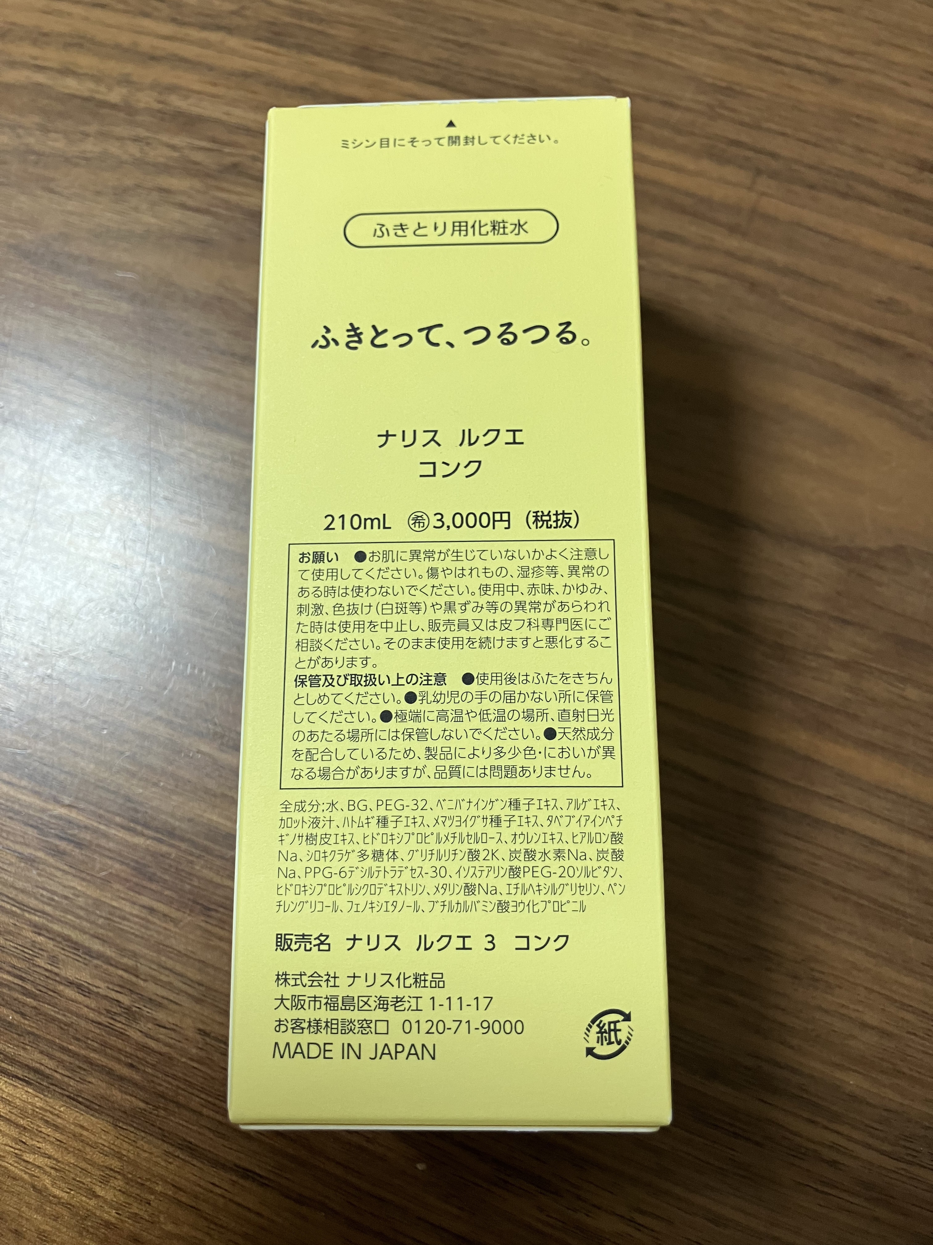 - ■毛穴、ザラつき、くすみ※1が気になる方に、不要な角質をふきとって、つるんとなめからかな肌へ。 ナリスのふきとり化粧水は、5年連続国内売上シェアNO.1※2 肌にとって余分な老化角質をおだやかに取り除き、素肌が持つ本来の美しさを引き出すルクエのコンク(ふきとり用化粧水)はナリスの80年以上続く研究開発によって誕生しました。 ●キレイのこたえは、ふきとり化粧水という選択。 植物保湿成分で古い角質をやさしくオフして、次に使うスキンケアアイテムのなじみをサポート。日々変化する肌をすこやかに整えます。毎日の“ふきとり習慣”で理想の肌に近づきましょう。 ●厳選した3つの植物の力で角層ケアをサポート。 ・柔らかくほぐして、取り除きやすくする「ヨクイニンエキス」※3 ・潤いを与え、健康的な角層へ導く「月見草エキス」※4 ・潤いを逃さず閉じ込める「白花豆エキス」※5 【使用方法】 1. 朝晩2回、洗顔後の後に。 2. コットンに8〜10滴程度(500円玉大)を含ませます。目安は、コットン裏側に染み込む程度。 3. できるだけ力を入れずに、やさしくなでるように顔全体を拭き取ります。 ※1古い角質による ※2ナリス化粧品 2015~2019年度 「ふきとり用化粧水」販売動向調査 TPCマーケティングリサーチ株式会社調べ※3 ハトムギ種子エキス(保湿成分) ※4 メマツヨイグサ種子エキス(保湿成分) ※5ベニバナインゲン種子エキス(保湿成分)