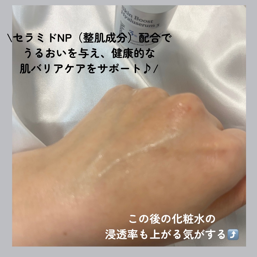 韓国発の人気スキンケアブランド『JMsolution』から導入*美容液「スキンブースト」シリーズが新登場したんです! スキンブーストヒアルロン酸はヒアルロン酸Na(保湿成分)3%配合で、乾いた肌をしっとり、なめらかな水光素肌へ導いてくれます。 ややとろみのあるテクスチャー。なめらかに肌になじむような使い心地です。