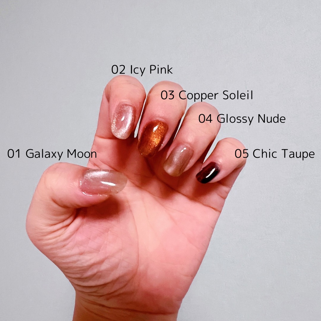 マグネットネイルが数量限定で新登場✨ しかも、GM57 はがせるベースジェルミークリスタルトップジェルを一緒に使うからオフも簡単にできるの☺️ マグネットとラメの奥行きが美しくて どの色も肌馴染みが良いカラーだよ❣️ ツヤツヤの仕上がりで超優秀トップジェル✨ コレ、かなりお気に入り🤩
