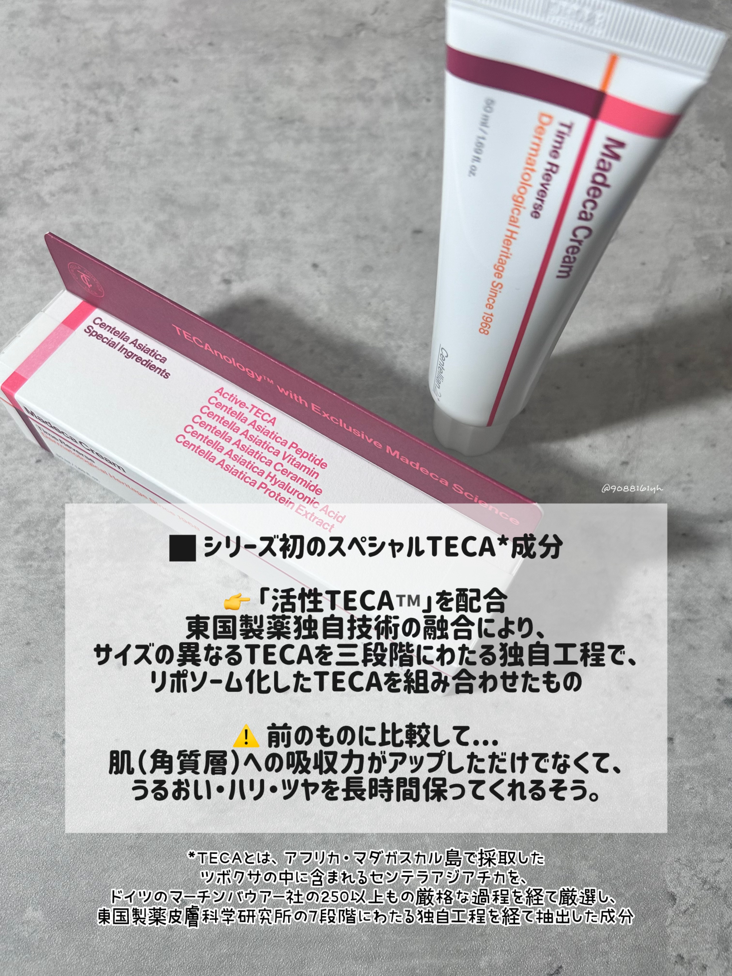 マデカクリーム大好きすぎる💓 テクスチャは少しもっちりだけどベタつきは感じず使いやすいです! どんなときでも頼れる◎ ツボクサタンパク質やツボクサペプチドなどを含むため、オールインワンケアができると感じました💓