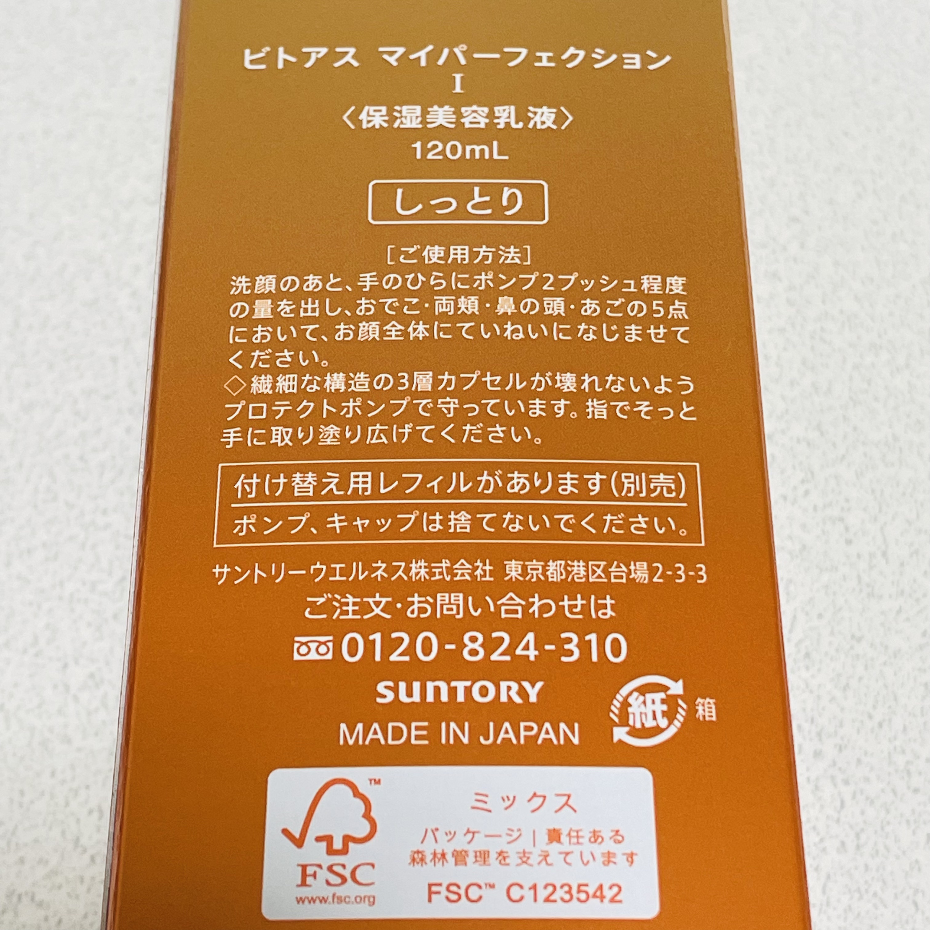 化粧水・美容液・クリームの成分が“時間差”で浸透し、手間ひまかけたような仕上がりをたった1品で実現する、1本完結スキンケアアイテムです。 サントリー独自技術「3層浸透カプセル」により、化粧水、美容液、クリームの3層が肌の上で順番にはじけてとろっ、すーっ、ぴたっとテクスチャが変化するそう。 そんな毎日のなかで、1つでケアできるビトアスは洗顔後に肌に馴染ませるだけでスキンケアが完結できるから時間にも心にも余裕を生んでくれて手放せない存在!