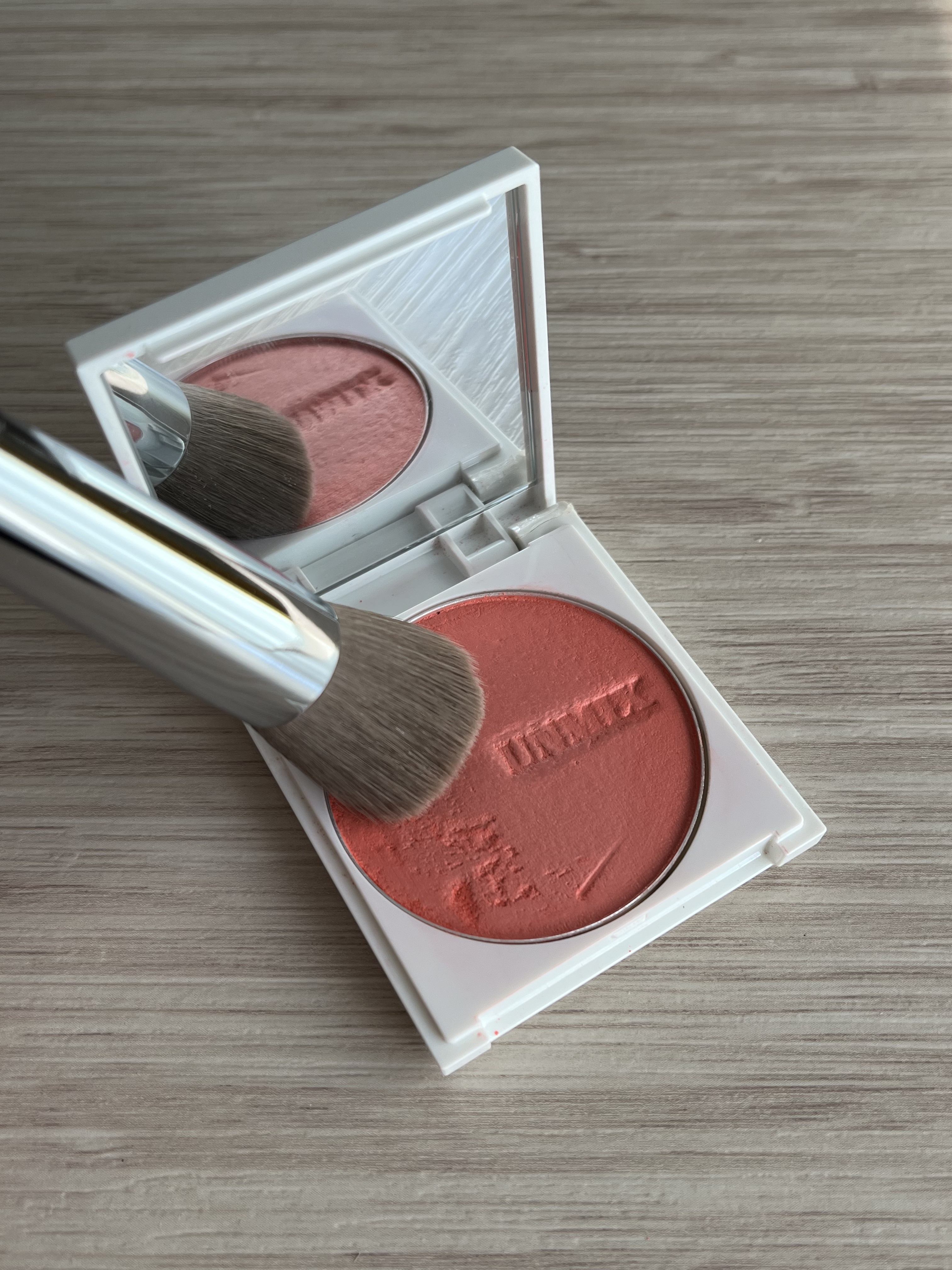UNMIXのフェイスグロウブラシはとても良くほど良い発色でムラなく付けられた訳です。 フラットな面は珍しいと思いますが、均一に色をのせるためだそうです。 UNMIXのフェイスグロウは指でも使えますが、ブラシで使ってみたい人はぜひこのブラシを購入することをおすすめします!