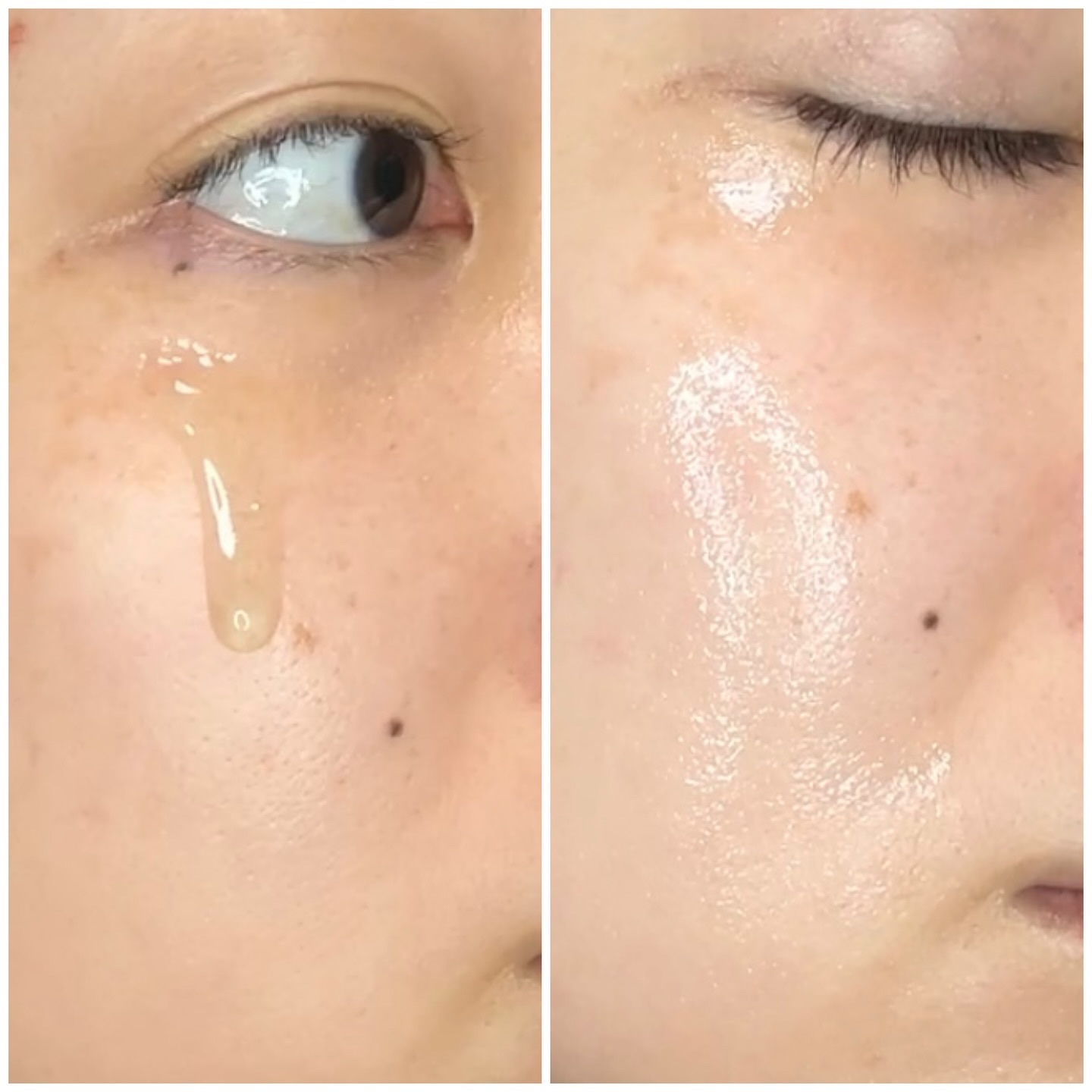 ニキビ鎮静成分84%の高濃縮アンプルです。シカより5.3倍強く急速鎮静とぎっしり水分チャージします。 テクスチャーはとろんとしてジェリーのようです。水分たっぷりなのが肌に乗せた瞬間に分かるほどにプルプルしています。 無着色&香料不使用なのは嬉しい。スポイトで一定量取れるのも好印象です。