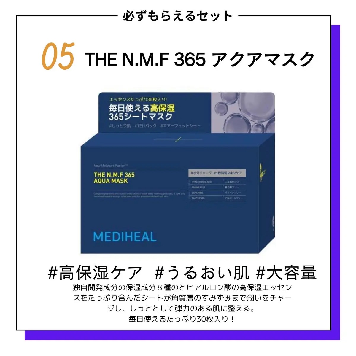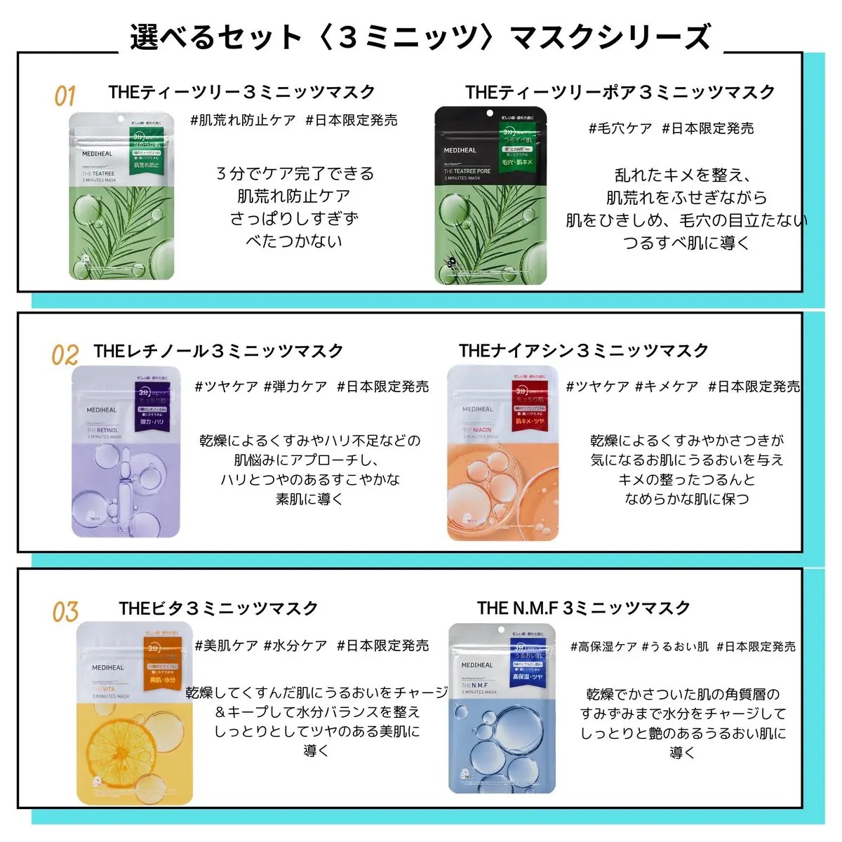 韓国パックの火付け役的存在のMEDIHEAL。色々試したくて5種類使ってみたけど、やっぱり青と緑が好きでした💭 N.M.FアクアアンプルマスクJEX ティーツリーケアソリューション アンプルマスクJEX