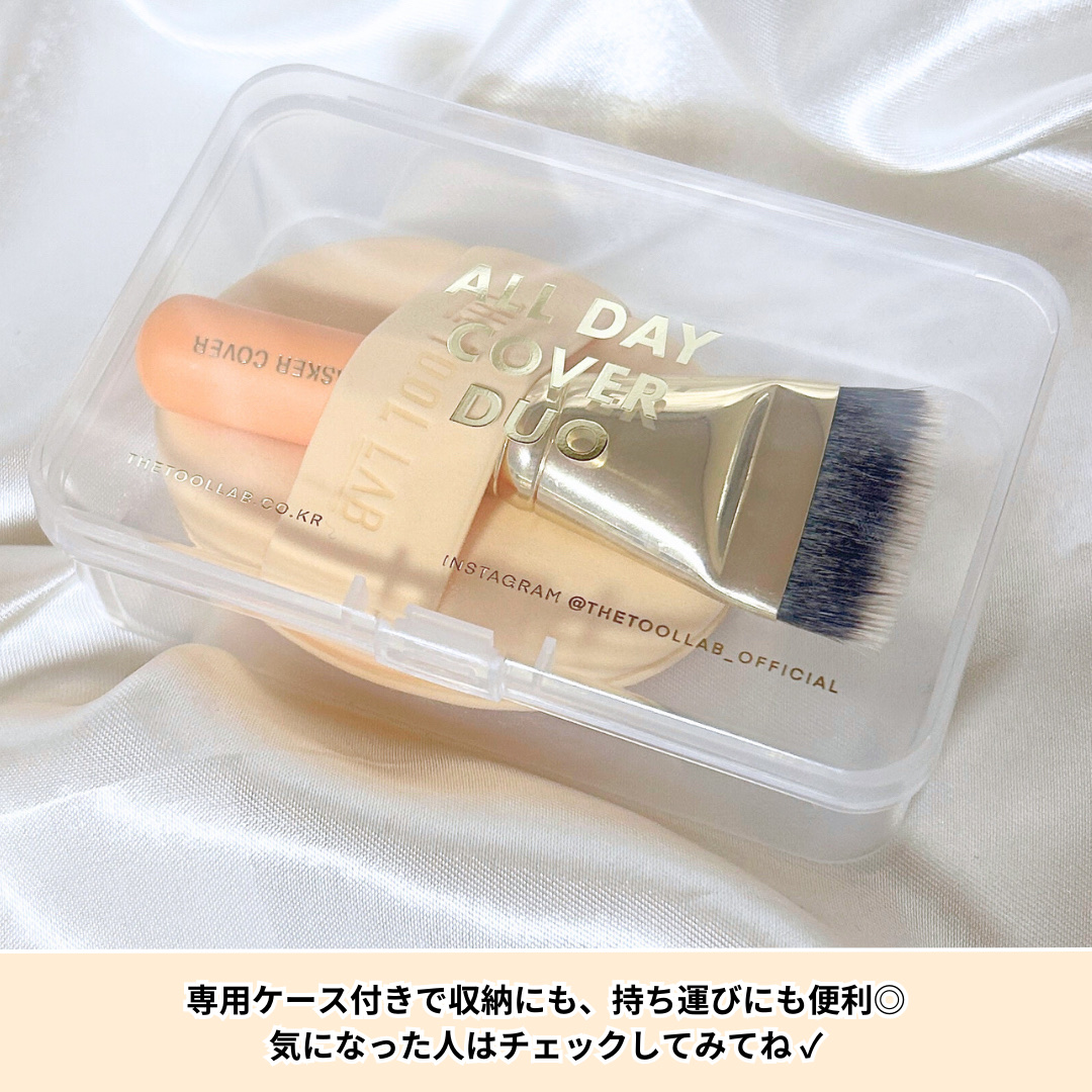 薄く均一にファンデを密着💫カバー力のある陶器肌*表現✨️ ブラシは柔らかいので肌の上で伸ばしても摩擦が気になりにくい💞筆の跡もつかず、ものすごく薄く塗り広げることができます😳 W使いすることで密着感が増して化粧崩れも気になりにくかった🌟