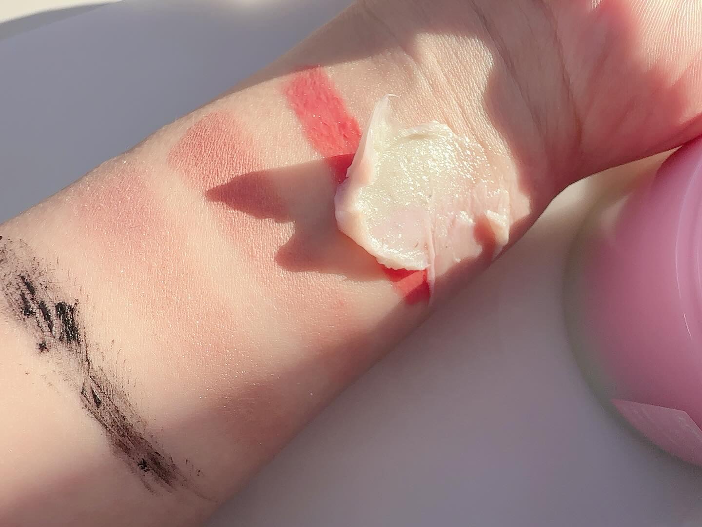 鎮静パック、クレンザー、水分ケア、角質除去がこれ1つで叶う、4in1のメレンゲクレンザーなんだ👀 ピンクとグリーンのカラーが可愛いよね♡ 洗い流した後は、つっぱることなく、しっとりとした仕上がりだったよ🫧