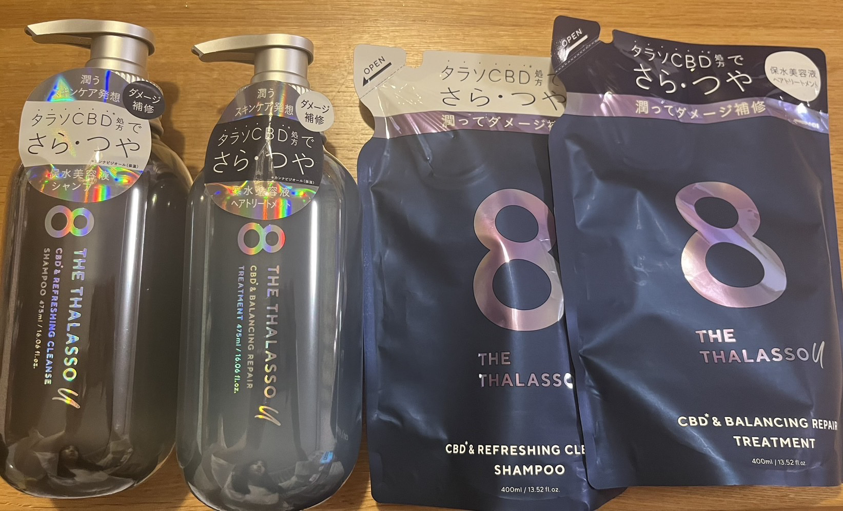 エイトザタラソユー💙CBD&リフレッシングクレンズ美容液シャンプー475mlCBD&バランシングダメージリペア美容液ヘアトリートメント475mlムスキーサボンの香り2022年に発売されてから、どのシャンプーにも浮気せずにずっと使い続けてるこの...