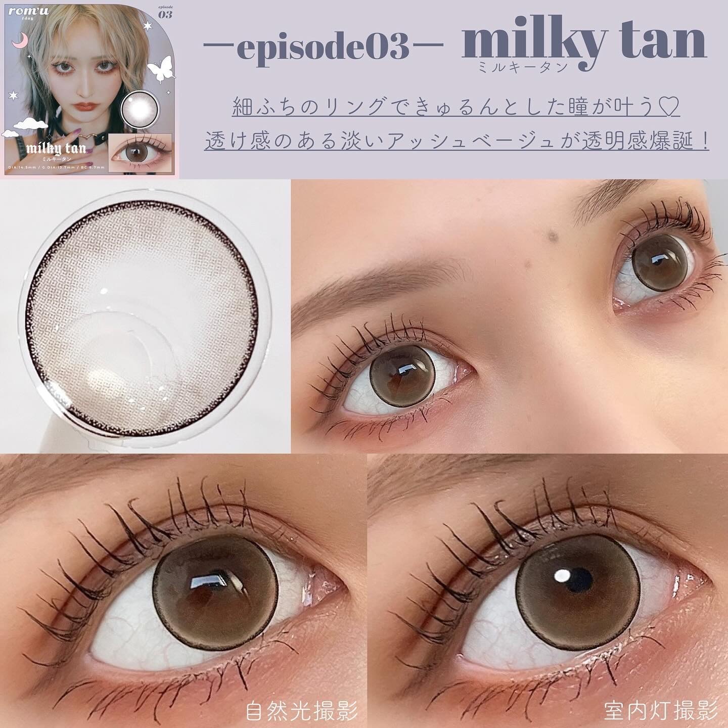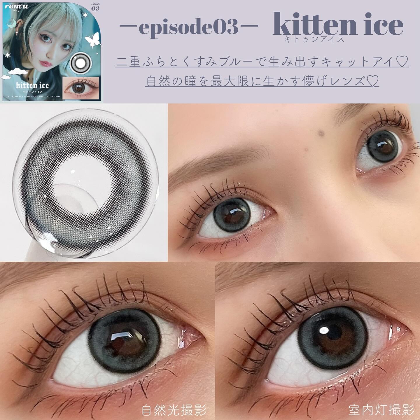 しっかり盛れる大きめのレンズ✨✨ 今回の投稿では欠品度数が続出した人気シリーズのrom’u episode01,02,03全カラー計9色をご紹介します🫧 太フチ×パープルカラーで甘さと存在感のある瞳へ💜 潤みピンク×ネイビーフチで自分の瞳の良さをいかす儚げレンズ🦋