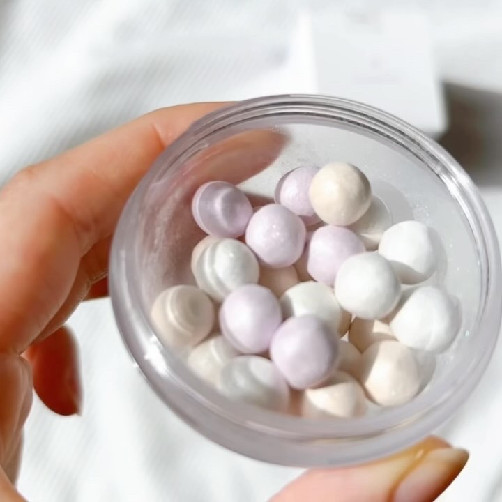 肌に溶け込む上品な輝き #シアーパールパウダーパウダーで油分を抑え、キメを整えるハイライターのような光沢感 とにかくかわいい♡ 3色の丸い玉が入ってる。混ぜて使うもよし。単色で使うのもよし。 透明感とツヤ顔がプラスされます。デコルテにブラシでのせるとキラキラしてかわいいかも。
