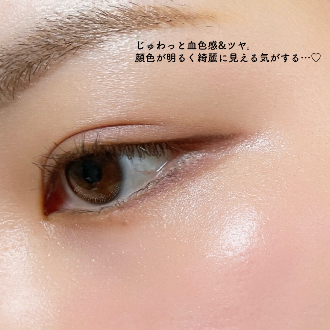 美肌ジェリーコート処方とは…ネット構造のジェリーが肌を包み込み、カバーしながらツヤ肌を演出。 ぷにぷにで肉球のようなテクスチャーです🐾つけ心地は気持ち良いのですが、伸びはあまりよくない気がしました。 仕上がりはかなり好印象!頬や鼻下の赤みが悩みですが色ムラをカバーして、つるん!とした肌に見せてくれます。 がっつりカバー!という感じではなく、素肌のようなツヤ感を出してくれるので透明感のあるすっぴん美肌風になれます✨ 密着力が高いのにつけ心地は重くなく、スキンケアの続きのような使用感です👑 このつけ心地・仕上がりでUVカット効果しっかり+洗顔料でオフできるのが驚きです…!!