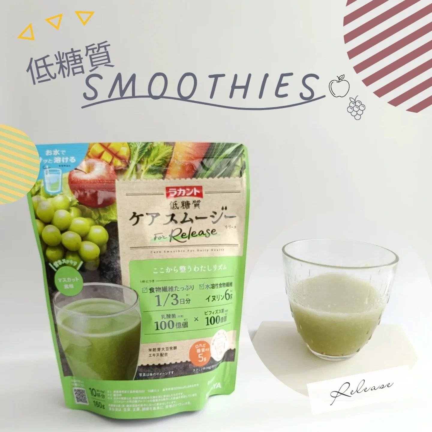 不足しがちな栄養を補給してくれる粉末スムージー「ラカント 低糖質ケアスムージー/リリース」を飲んでみました♪ 毎朝のリズムをサポートしてくれるという特徴があります。 開封するとフルーティーな香りがふわっと漂って飲んでもないのに美味しそうw