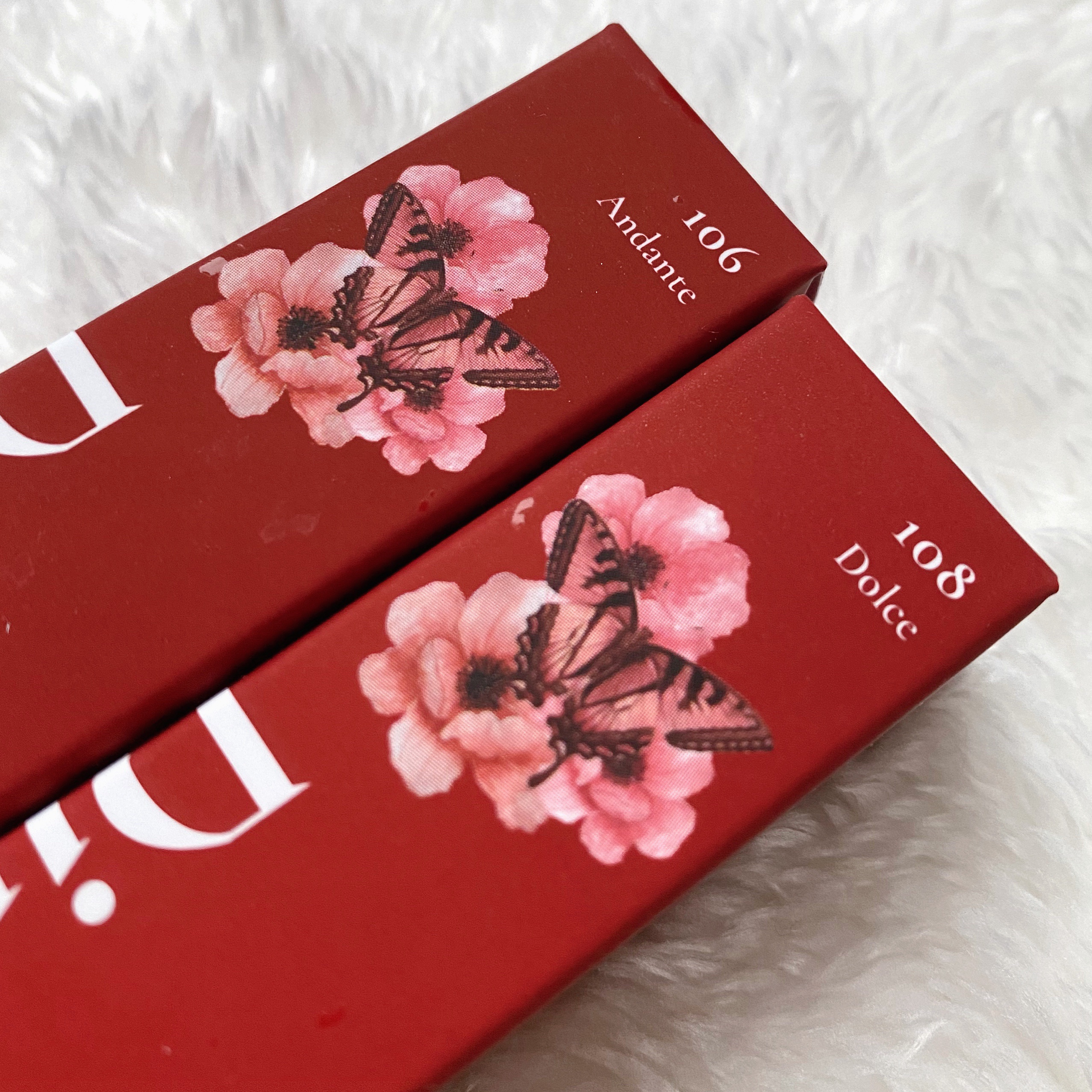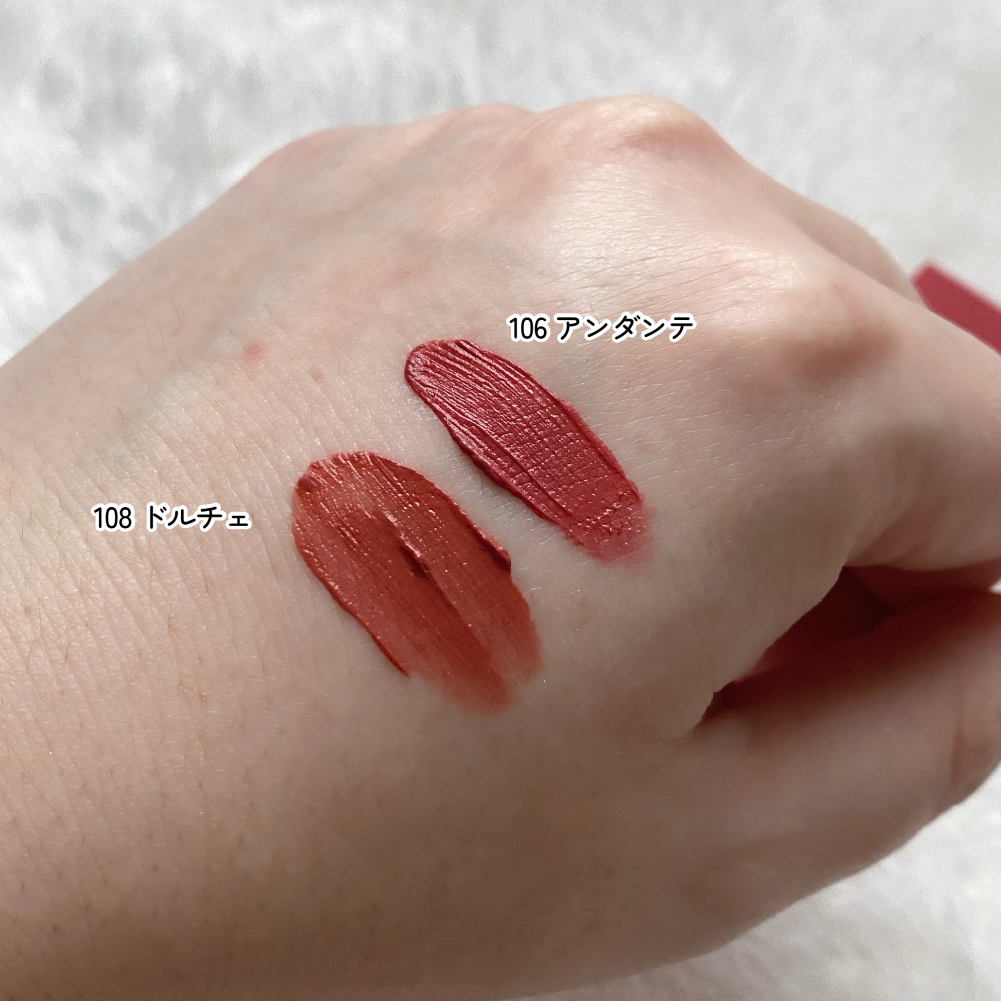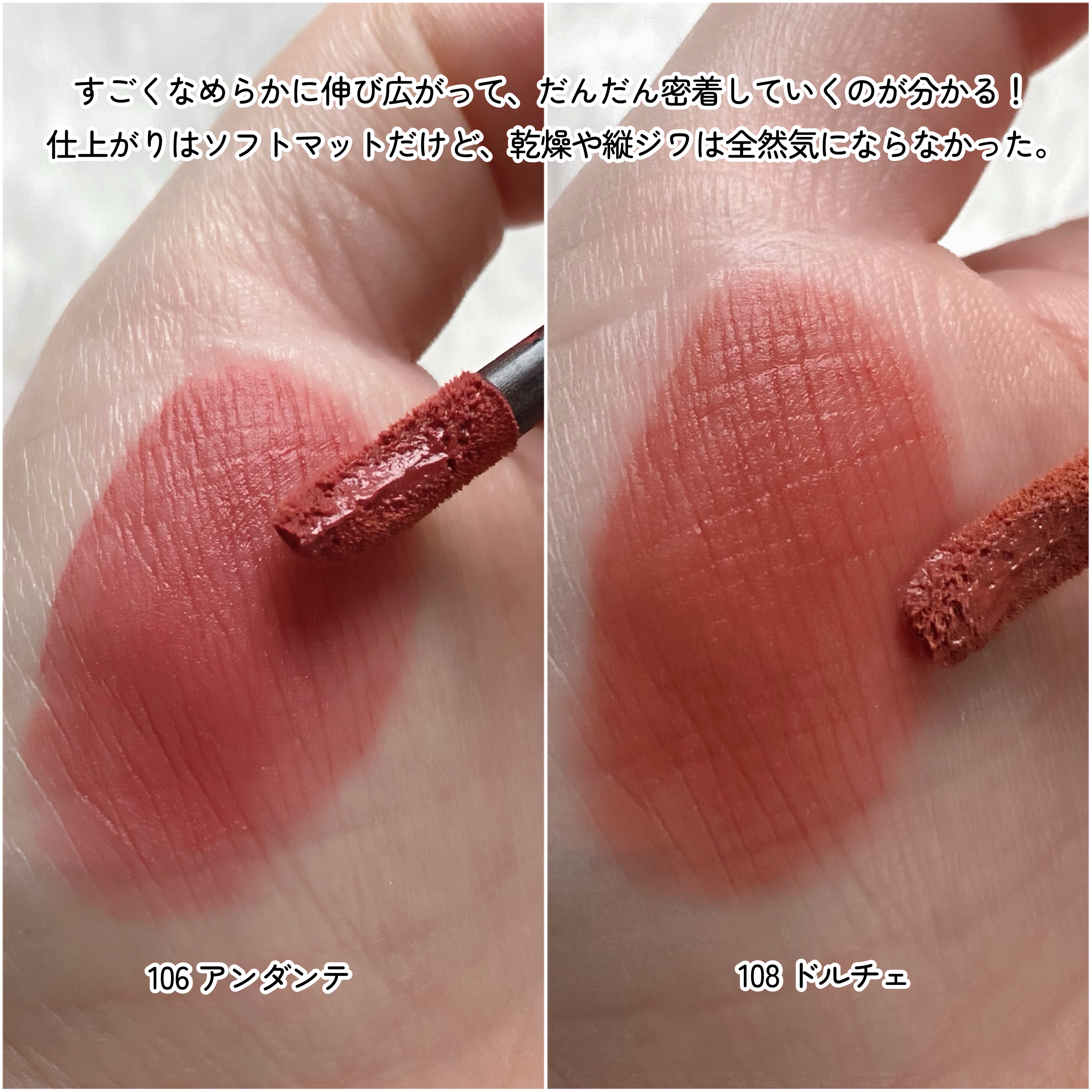 新作はマット特有のごわつきを感じない スフレのような軽くて滑らかなテクスチャ。 カラバリは豊富な10色展開💋⋆* 私は彩度低めな2色をチョイスしたよ! ベールがかったような軽さと滑らかさ、 ふわふわとした雲のように柔らかいテクスチャー。