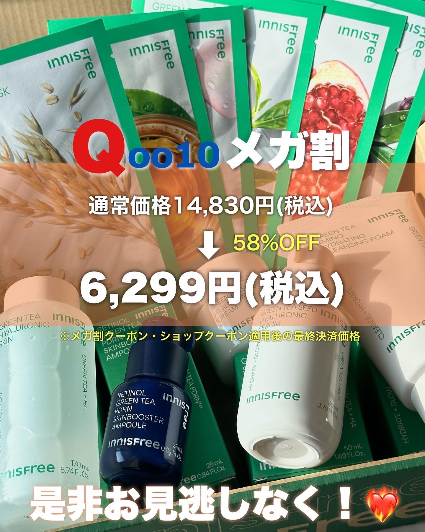 驚きの58%OFF🌸 通常価格:14,830円(税込) →メガ割価格:6,299円(税込) 「PDRN」配合の高濃度美容液がはいったQoo10限定のお得なセットです🫶🏻 自社農園で栽培した緑茶由来のヴィーガンPDRNを水の代わりに使用して美容成分80%以上の高濃度美容液に仕上げているそうです。すご。