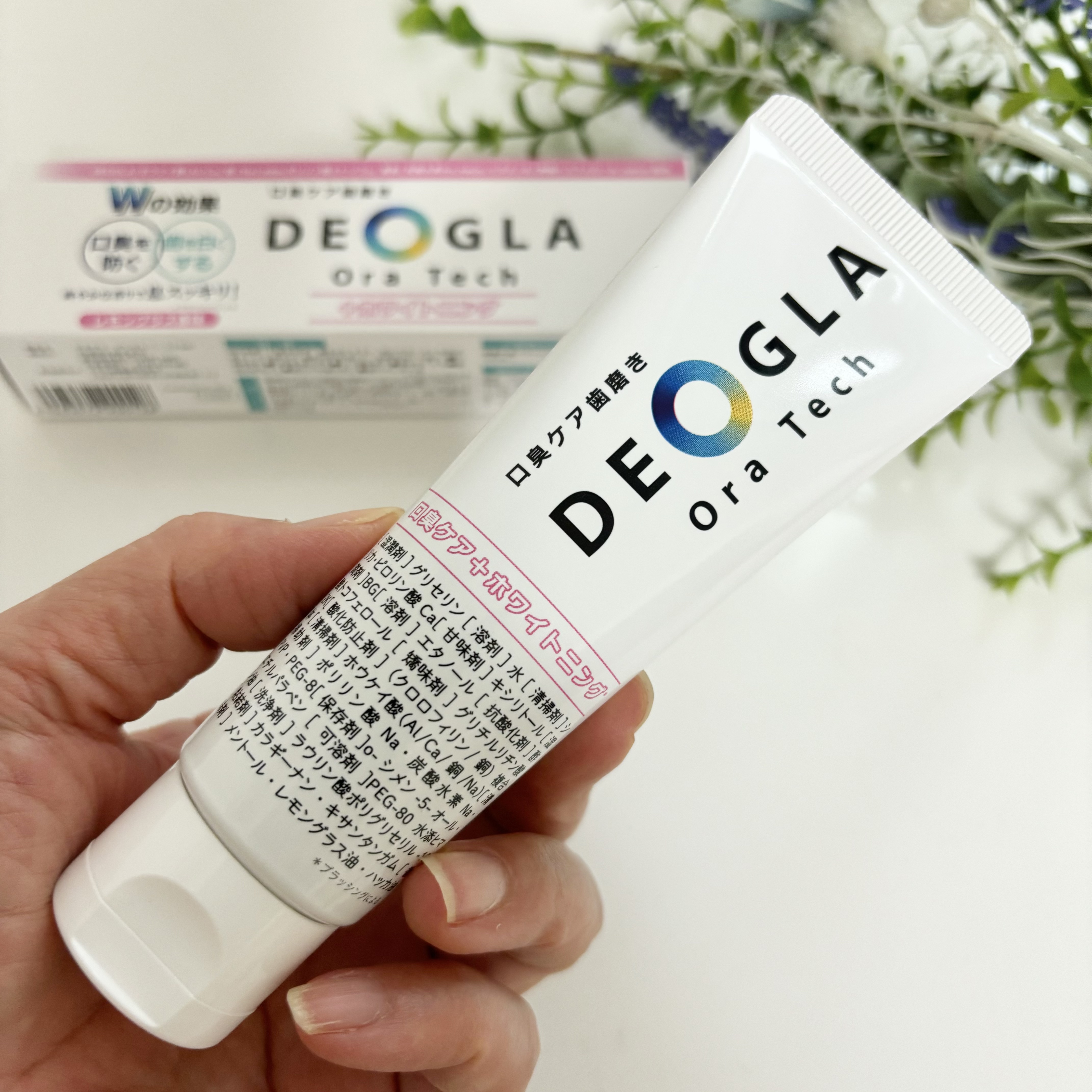 - \独自成分「DEOGLA®︎」(清掃剤)配合/ 創業200年を超える素材メーカーがつくる口臭ケアに特化した歯磨き粉! 製品の特長: 多数のご要望をいただいていた、口臭とホワイトニング *を1本でケアいただけます。ホワイトニング *はもちろん、独自成分DEOGLA配合で口臭にアプローチ。 徹底的にこだわった成分を配合しているので、口臭ケアとしてだけでなくお口のトータルケアにご活用ください。 ミントが苦手な方にもおすすめな、レモングラス香味、控え目な泡立ちでしっかりとブラッシングしていただけます。 ▶独自成分DEOGLA : 化粧品成分名称 ホウケイ酸(Al/Ca/銅/Na) *ブラッシングによる