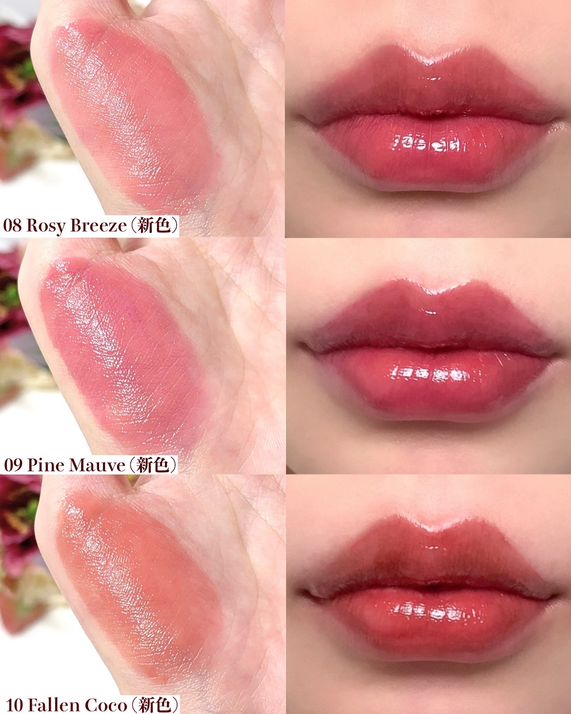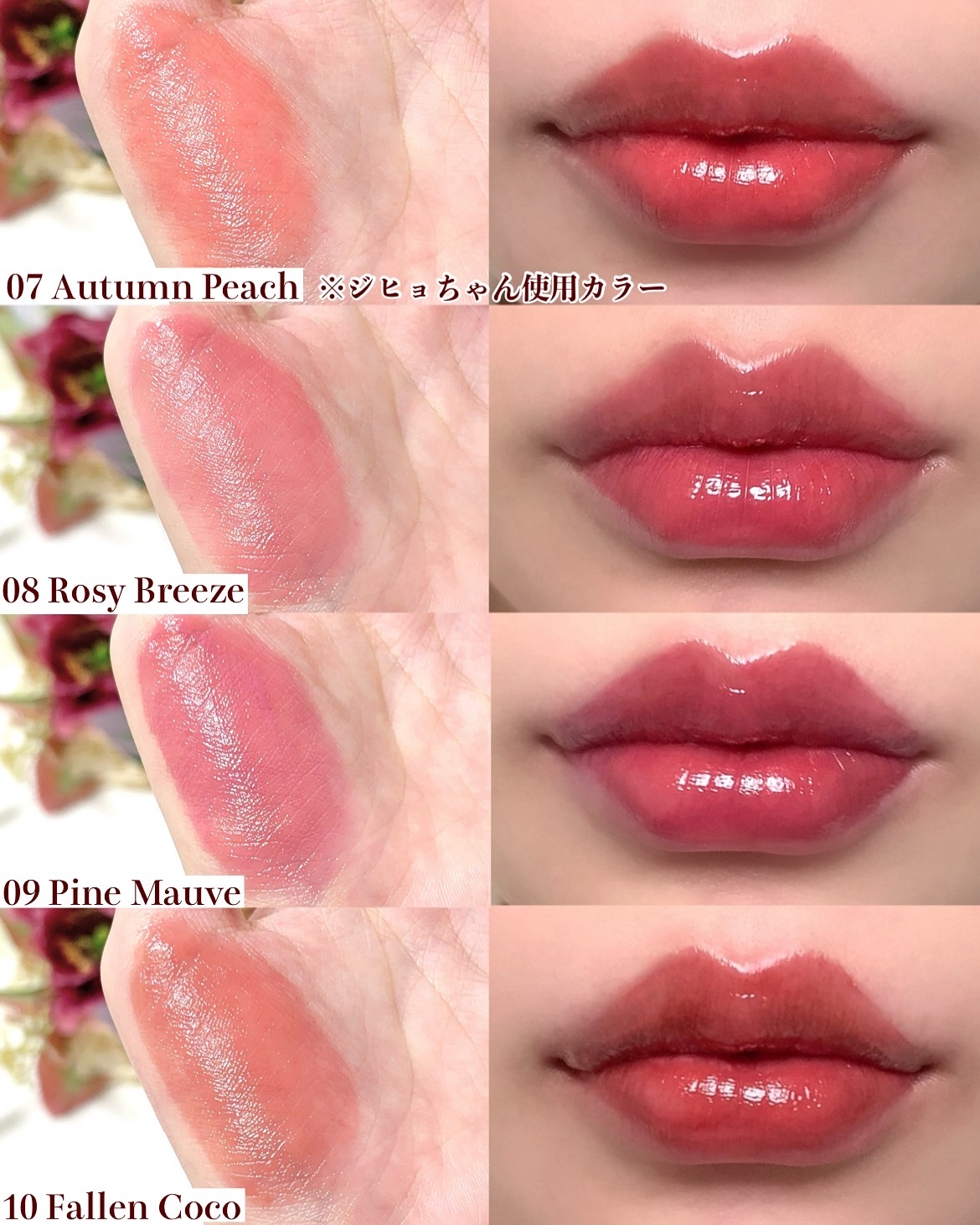 42%水分ベースだから軽いつけ心地で、ツヤんとしたら唇が叶うよ✨ 08ロージーブリーズは、イエベブルベ問わずおすすめしたい! 落ち着いたローズのようなソフトピンク🥀🩷 気になった方はぜひチェックしてね🥹🤝