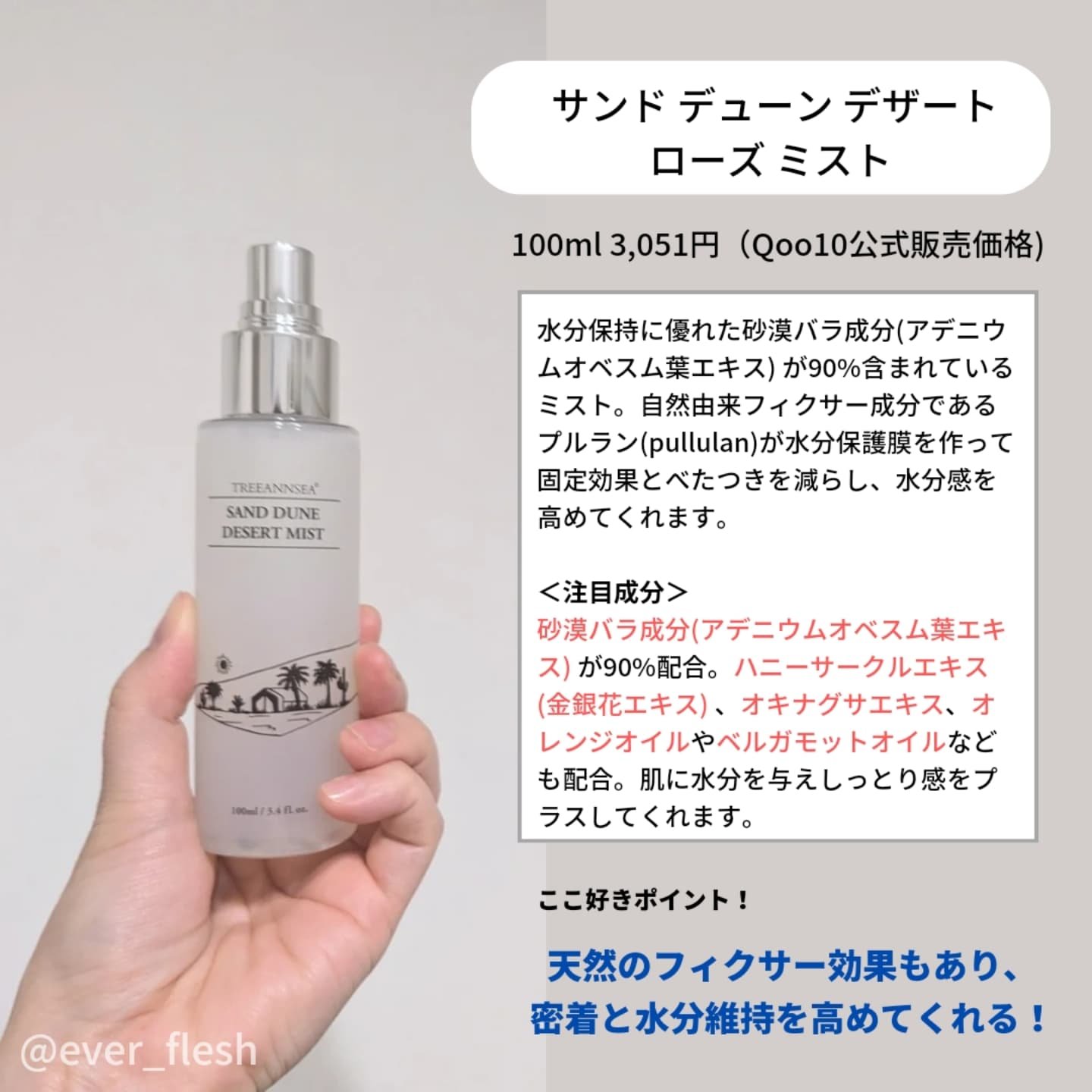 TREEANNSEA(ツリーアンシー)は土(TREE)と海(SEA)、大自然(Mother Nature)から少女・アン(ann)が生まれて肌の老化を遅らせる旅をコンセプトにしたビューティーブランド🌿 保湿力に優れたデザートローズエキスを90%配合したミストで、ベタつかず手軽に水分補給🌟 アガベサボテンを84%以上配合した水分ケアアンプルで、乾燥によりくすんだ肌をなめらかで透明感のある肌に導きます✨
