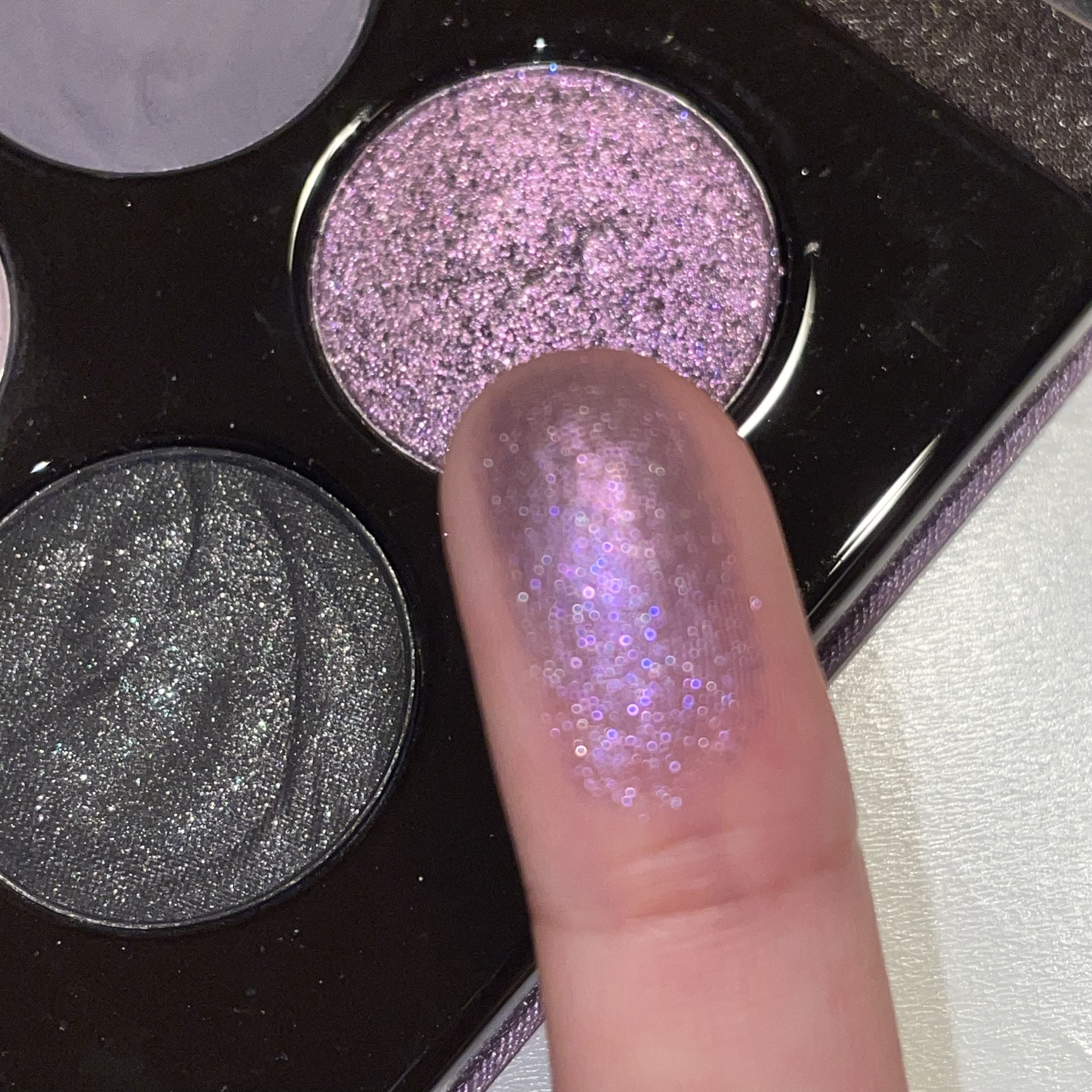 この4色パレットのシリーズ内では最もナチュラルかな?? ふんわりとしたスモーキーメイクが作りやすい✨✨ くすみピンクがふわっと馴染んでくれてこの色味が可愛い😍💕 ぴったり密着してラメ飛びしにくいKaleidosのラメは本当に好き😍