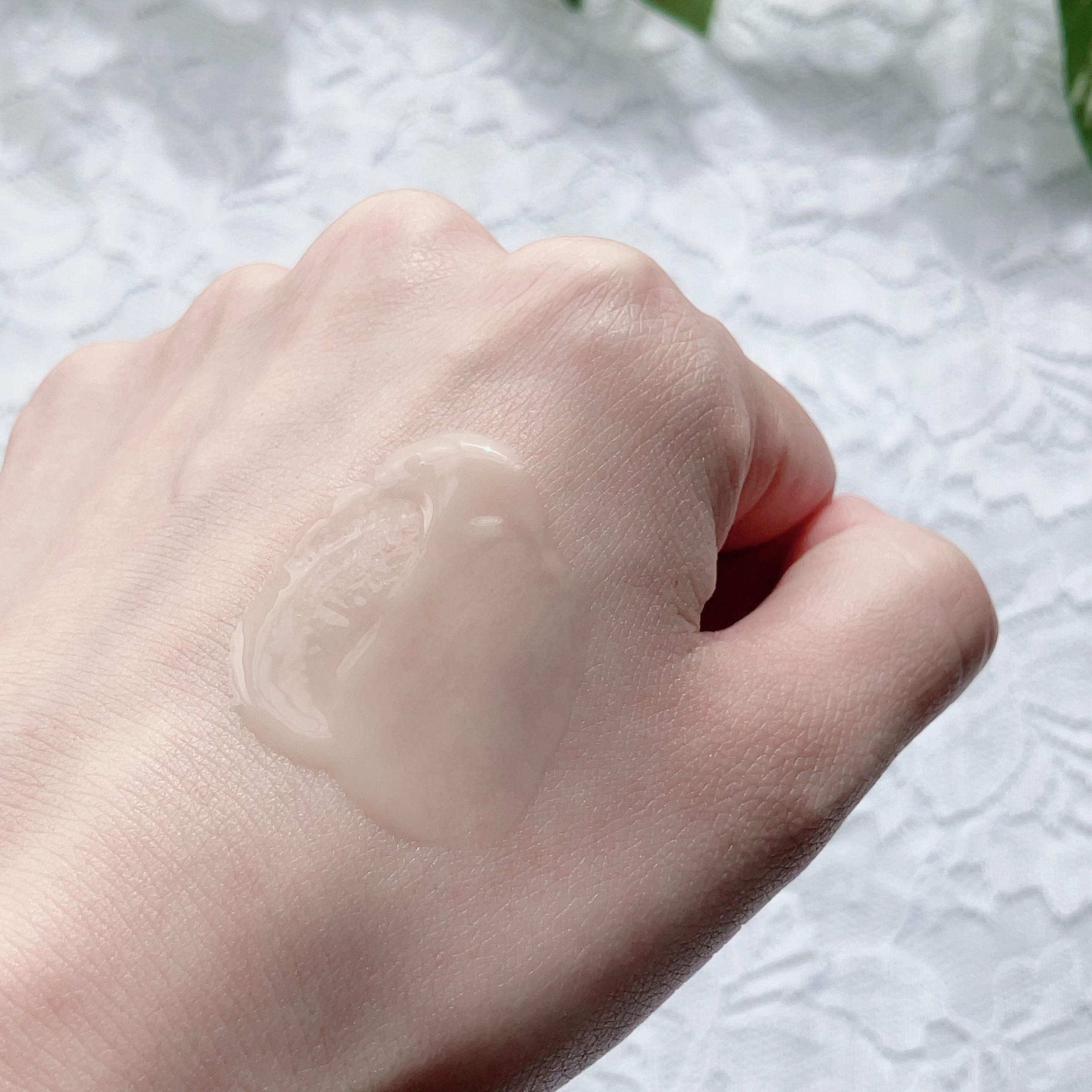 さらさらで伸びが良いテクスチャー。 肌への密着感もあって、ピンクベージュの色みが毛穴のカバーとほんんのりトーンアップも。 クリームのようなテクスチャー。 肌にのせすぎると白っぽくなるので、少しずつ伸ばすのが◎ なめらかテクスチャー。 細かいパールが入ってますが、ギラギラしたりもなく自然な感じ。